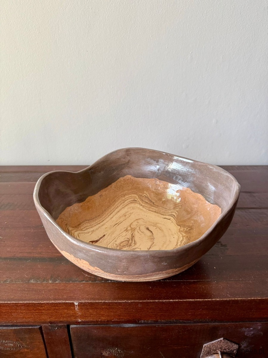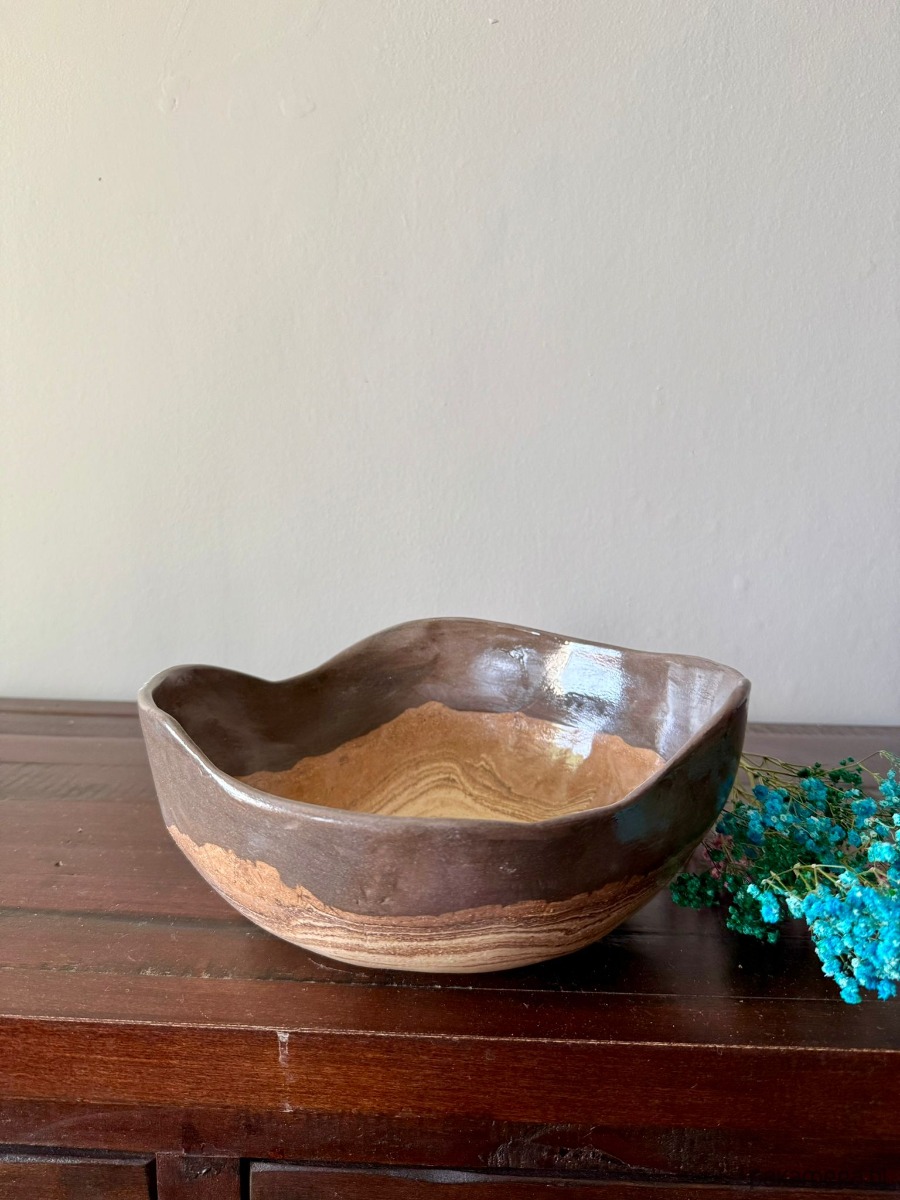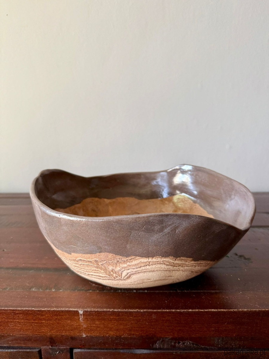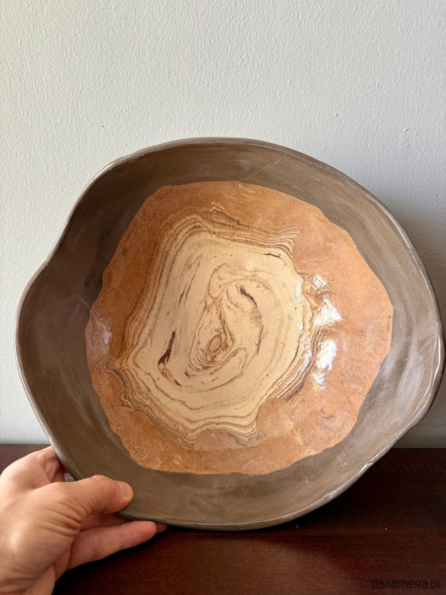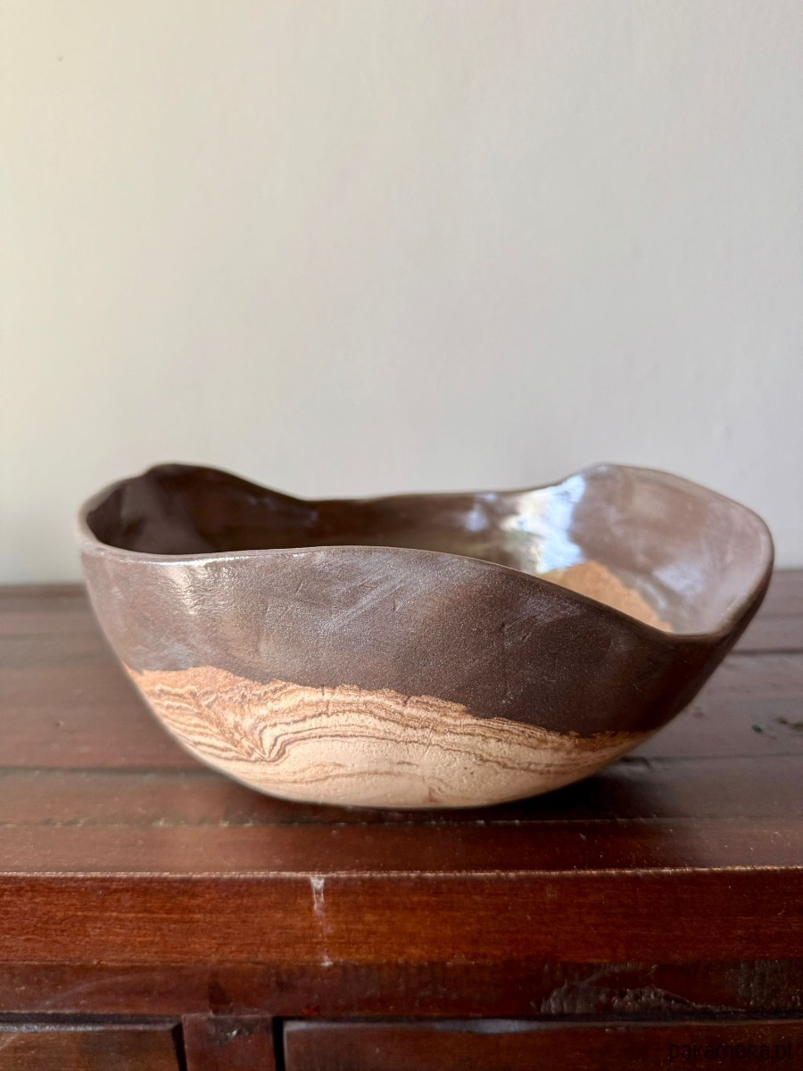 Misa „TreeSoul” to wyjątkowy przykład ceramiki inspirowanej naturą. Wykonana została ręcznie z trzech rodzajów gliny, które po połączeniu tworzą niepowtarzalny wzór przypominający strukturę drewna i układ słojów. Każdy egzemplarz jest jedyny w swoim rodzaju – układ warstw i odcieni gliny nigdy się nie powtarza. Całość pokryta jest transparentnym szkliwem z obu stron, dzięki czemu misa zachowuje naturalny charakter, a jednocześnie jest trwała i bezpieczna w użytkowaniu.