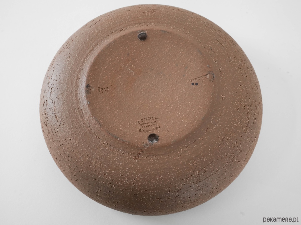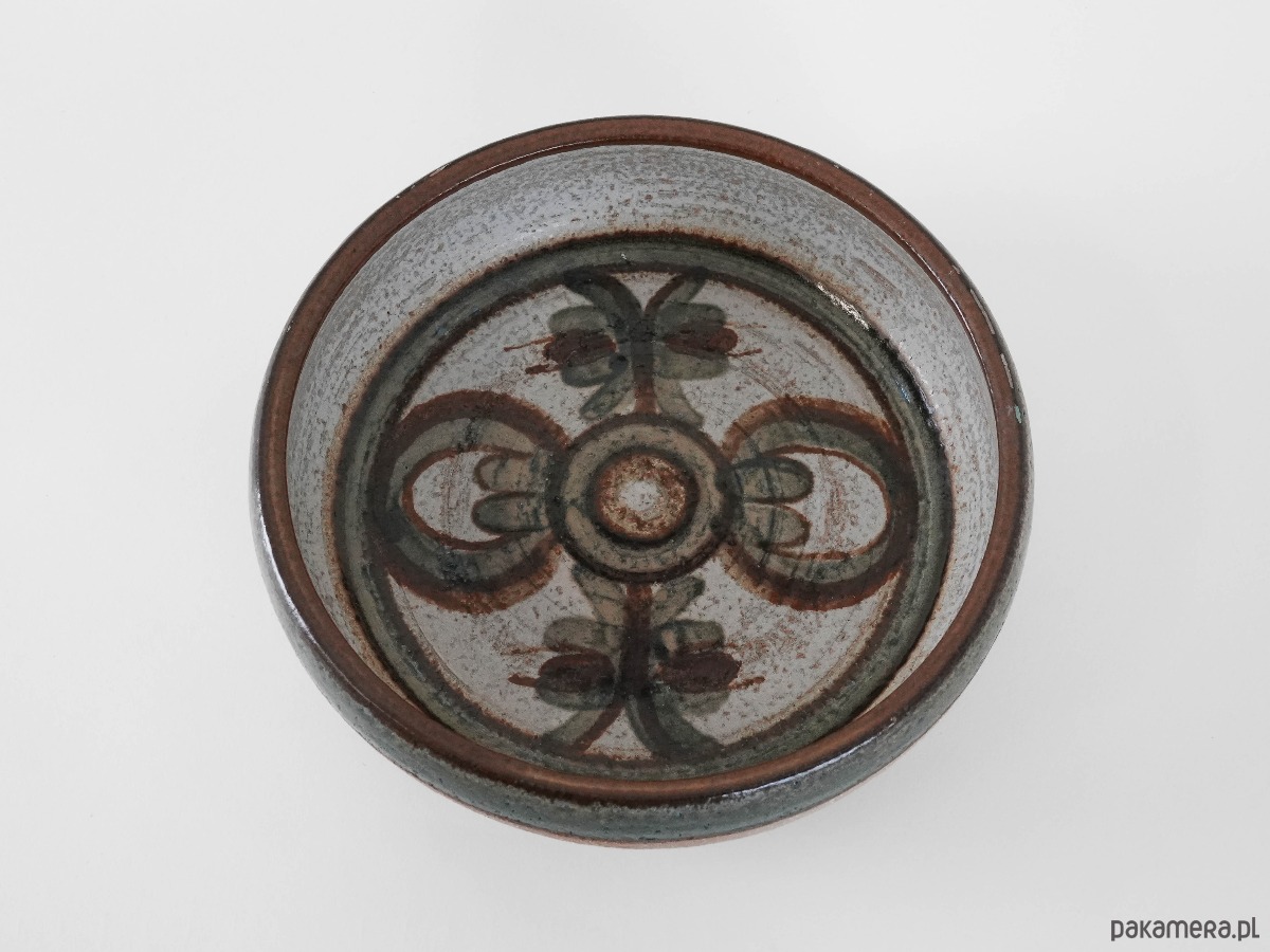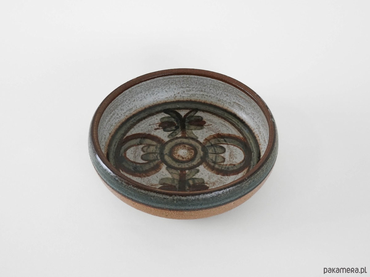 Utrzymane w naturalnych odcieniach brązu, beżu i zieleni, zdobione charakterystycznym, ręcznie malowanym motywem roślinnym we wnętrzu. Kolekcjonerski przykład duńskiej ceramiki artystycznej z lat 70.