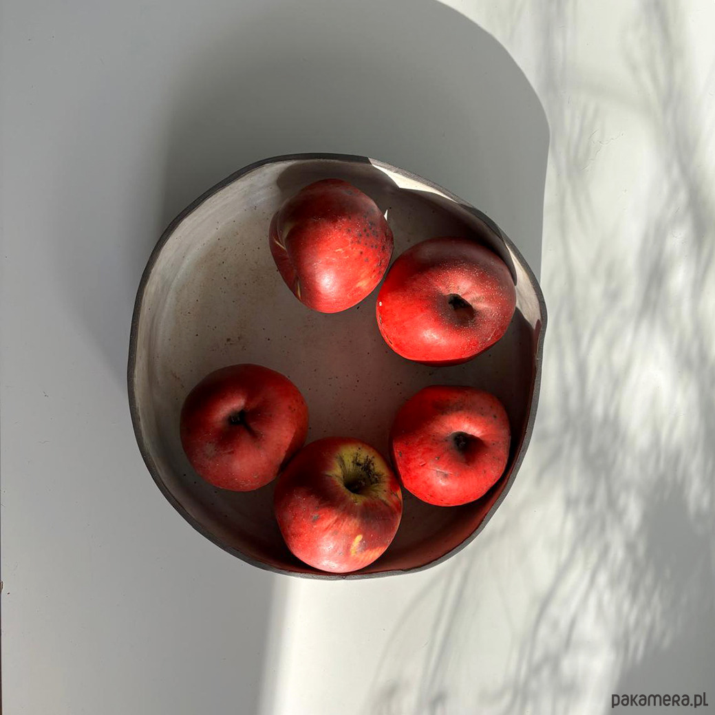 Minimalistyczna misa o prostym kształcie w kolorze kremowobrązowym.