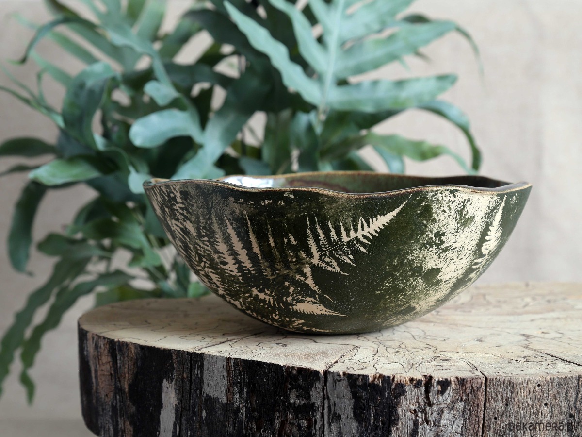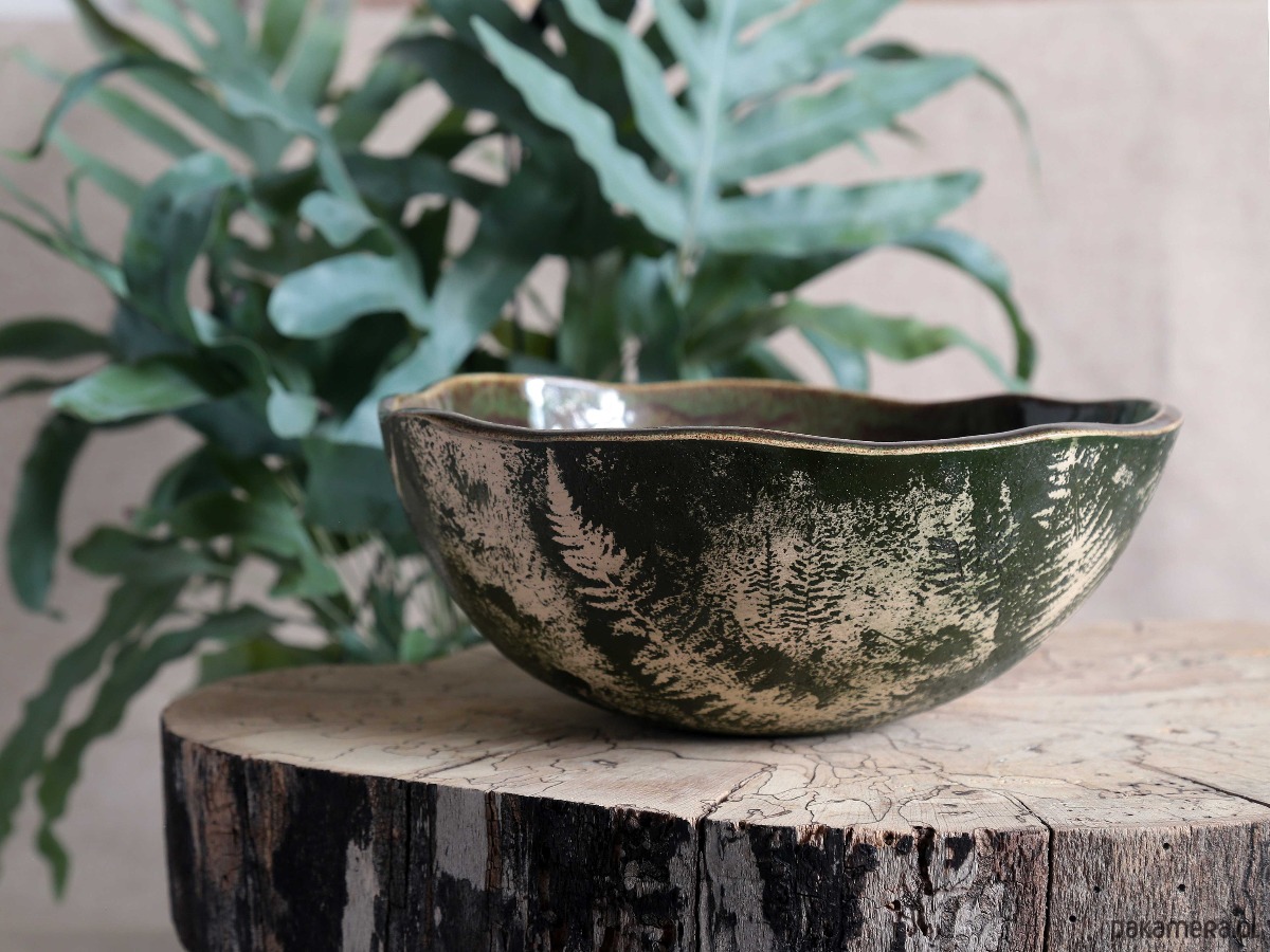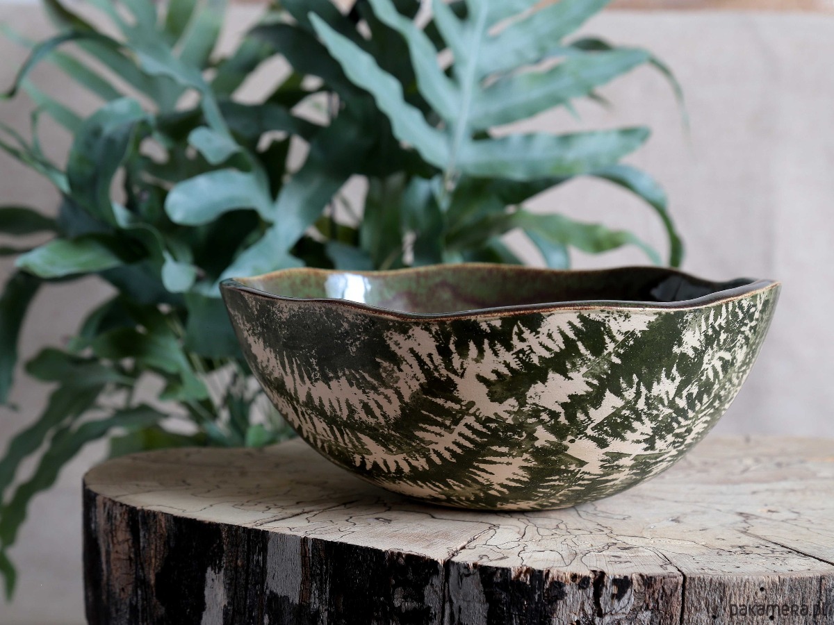 na zewnątrz odbite w angobie paprocie & szkliwo transparentne