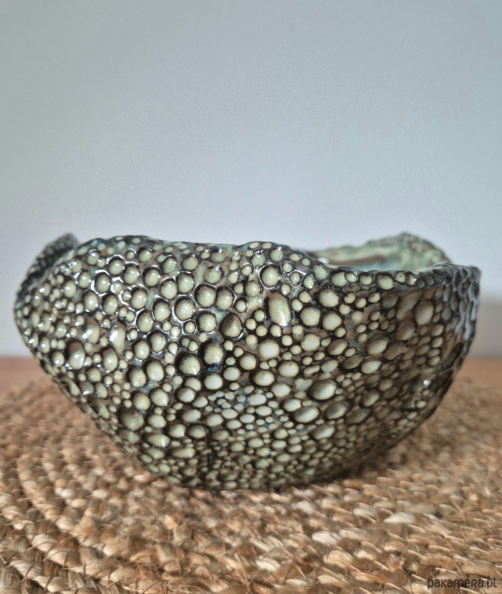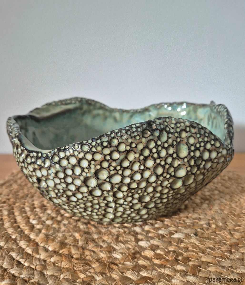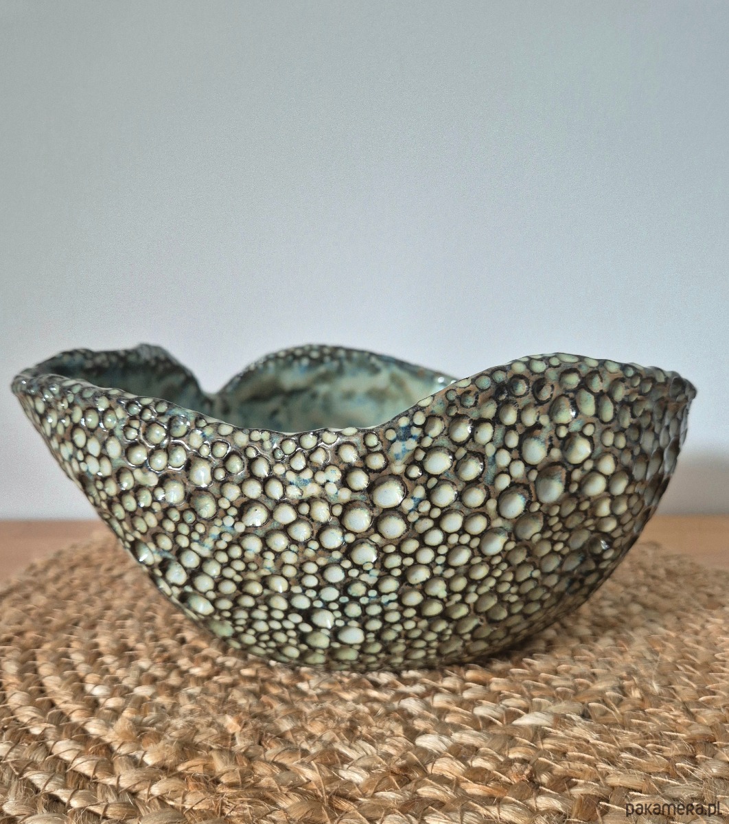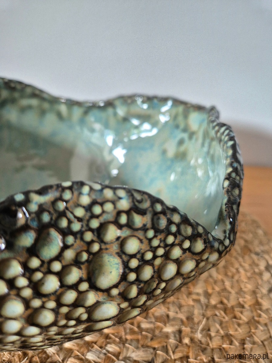 Piękna i oryginalna misa, ręcznie lepiona i misternie zdobiona od zewnątrz, aby otrzymać wyjątkowy i niepowtarzalny efekt końcowy