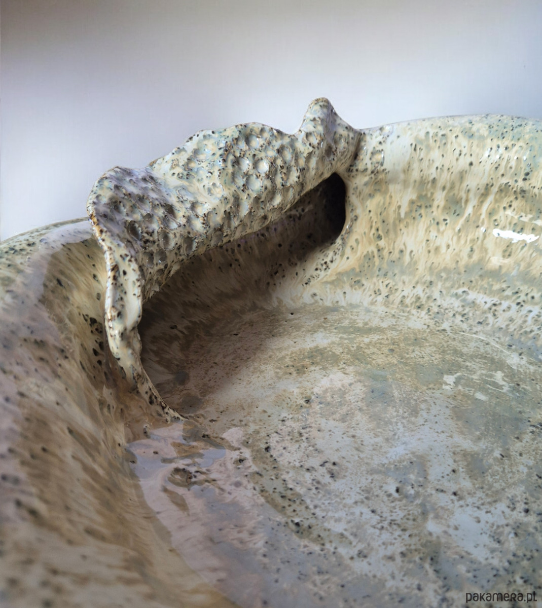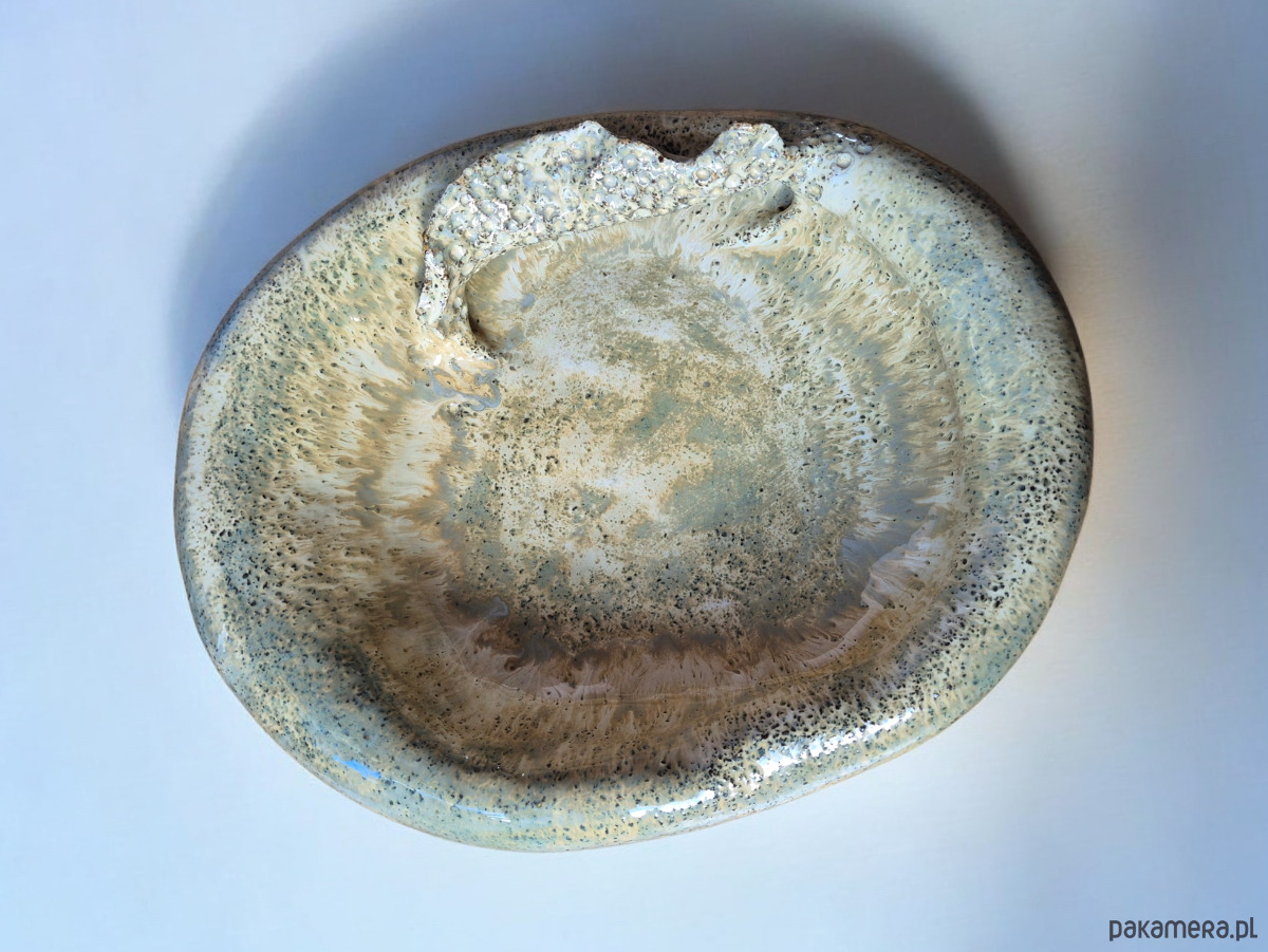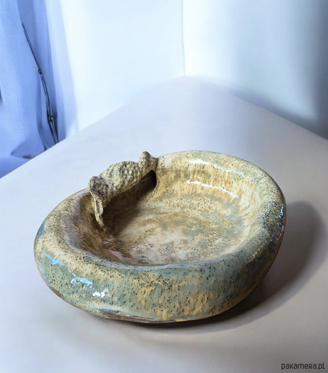 Piękna, oryginalna misa/rzeźba, ręcznie lepiona i misternie zdobiona, aby otrzymać wyjątkowy i niepowtarzalny efekt końcowy w kształcie przypominającą muszlę.