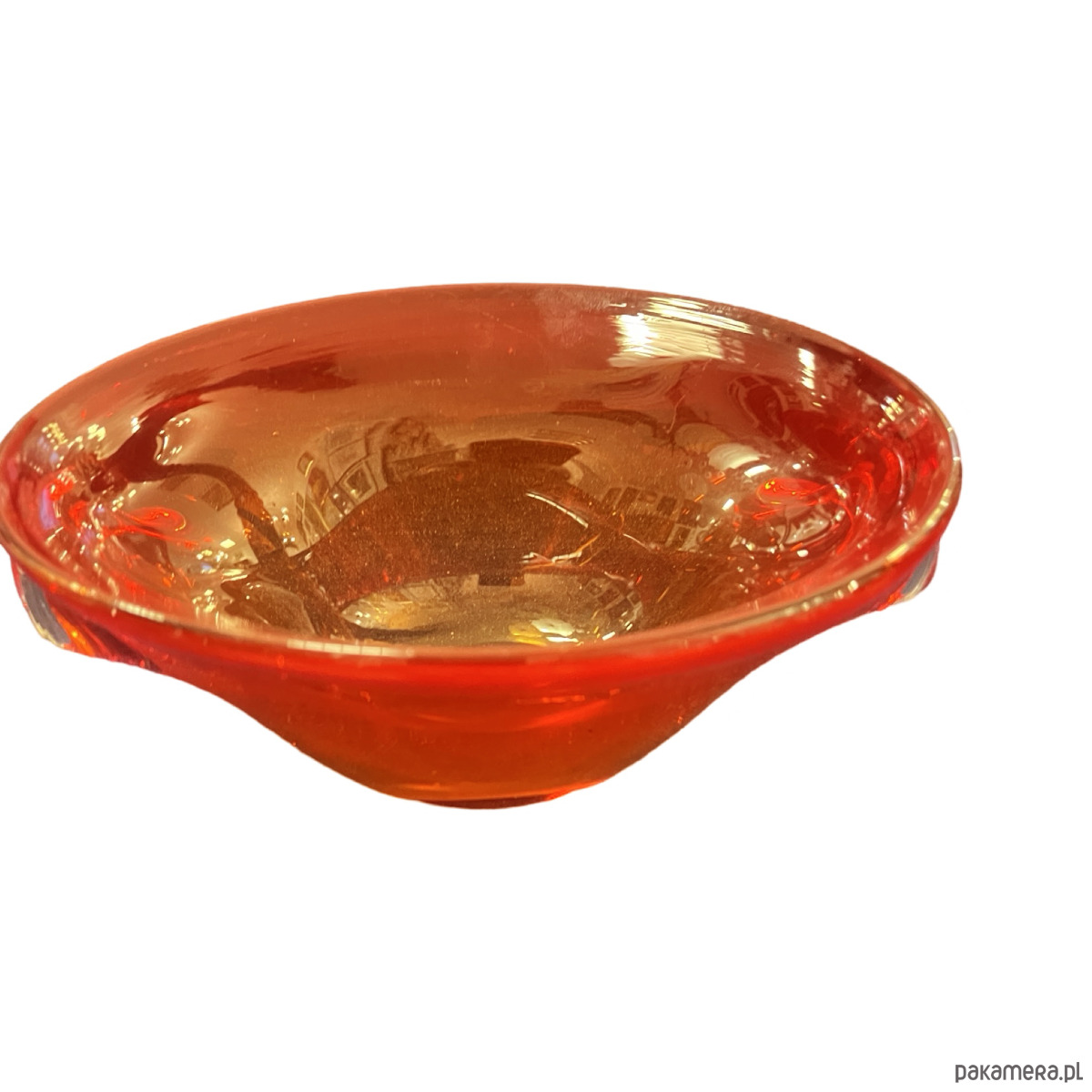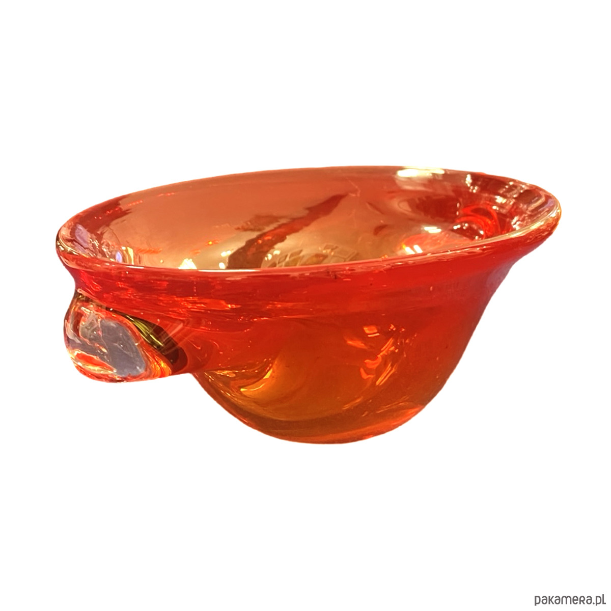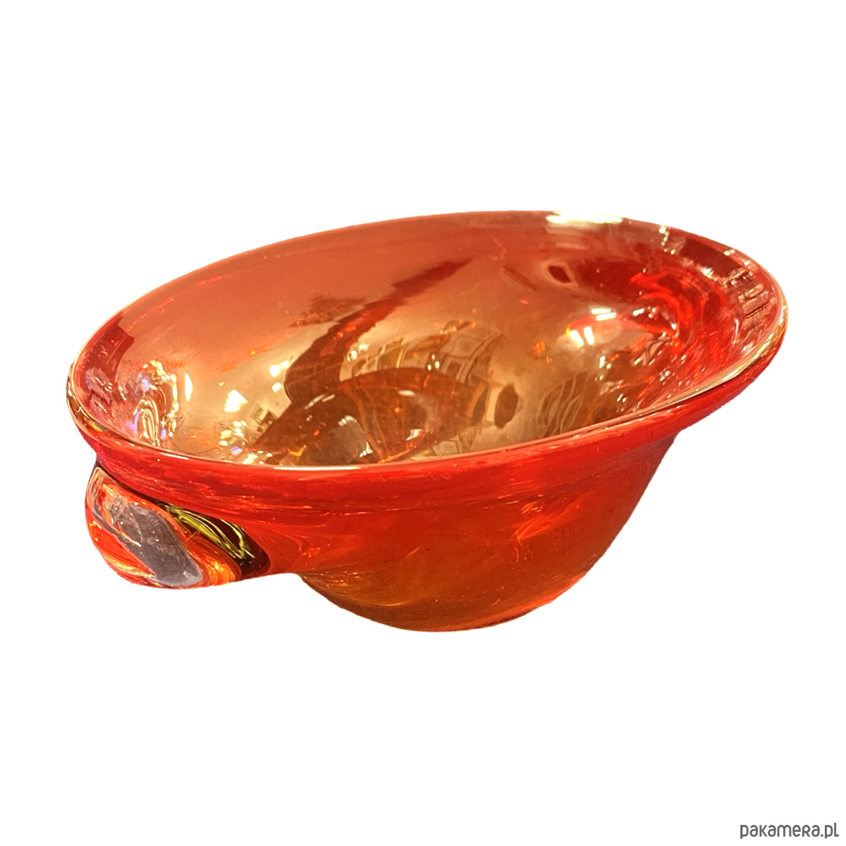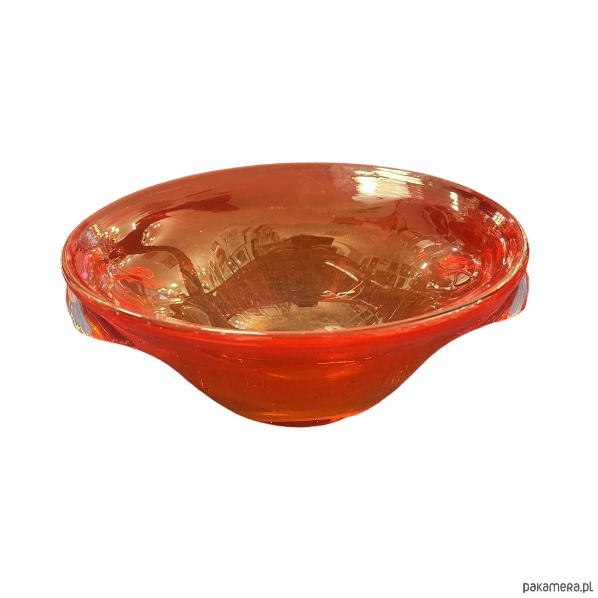 Ognista czerwono-żółta szklana misa w stylu mid-century modern wyprodukowana w latach 70. w Polsce przez Hutę Szkła Sudety w Szczytnej Śląskiej zaprojektowana przez Ewę Gerczuk-Moskaluk . Przedmiot wykonany ręcznie ze szkła sodowego, w kolorze czerwonym z zejściem w żółty z lekkim połyskiem opalizującym. Zachowany jest w bardzo dobrym stanie, bez uszkodzeń.