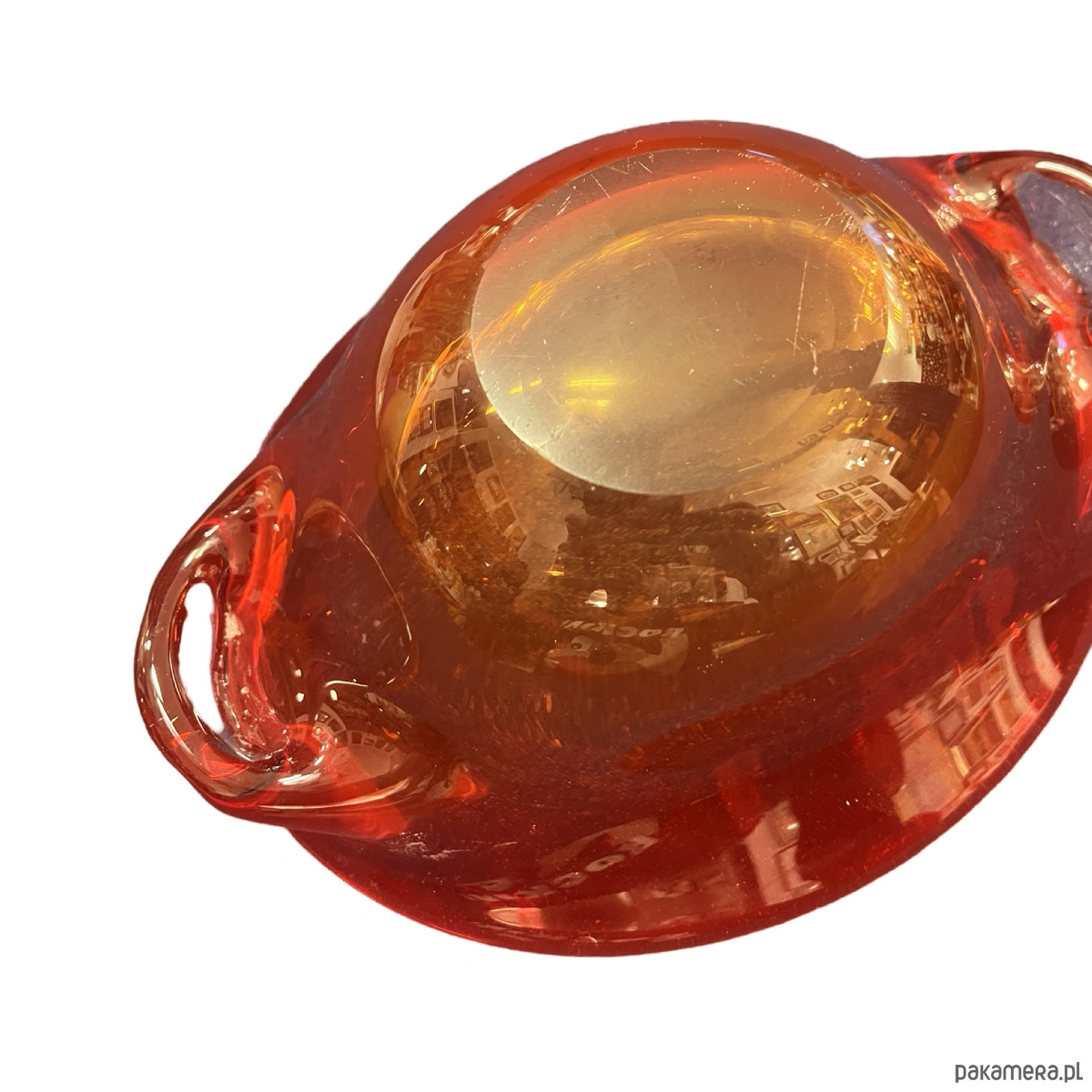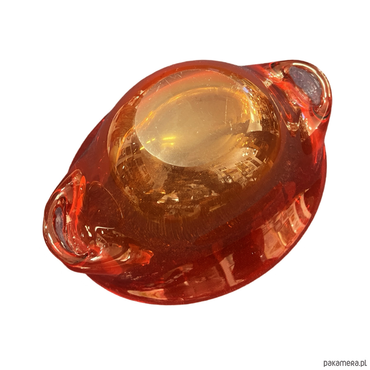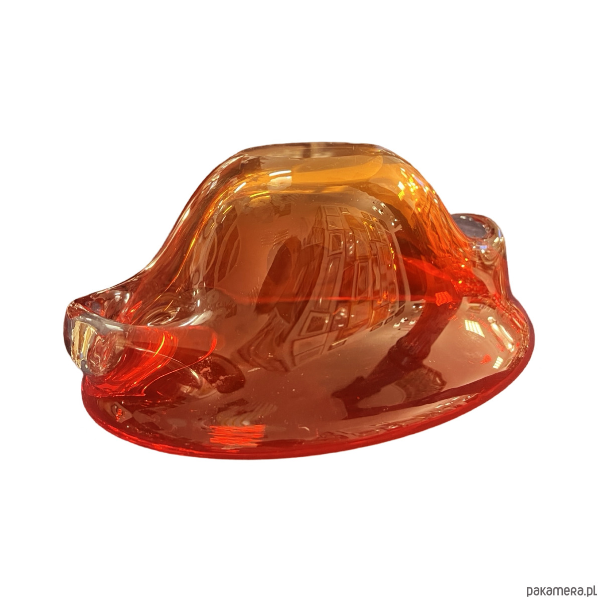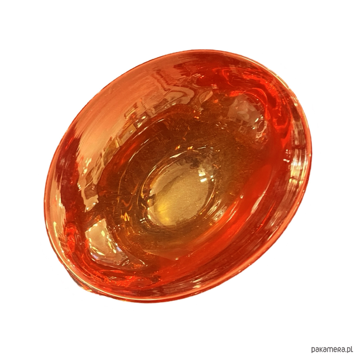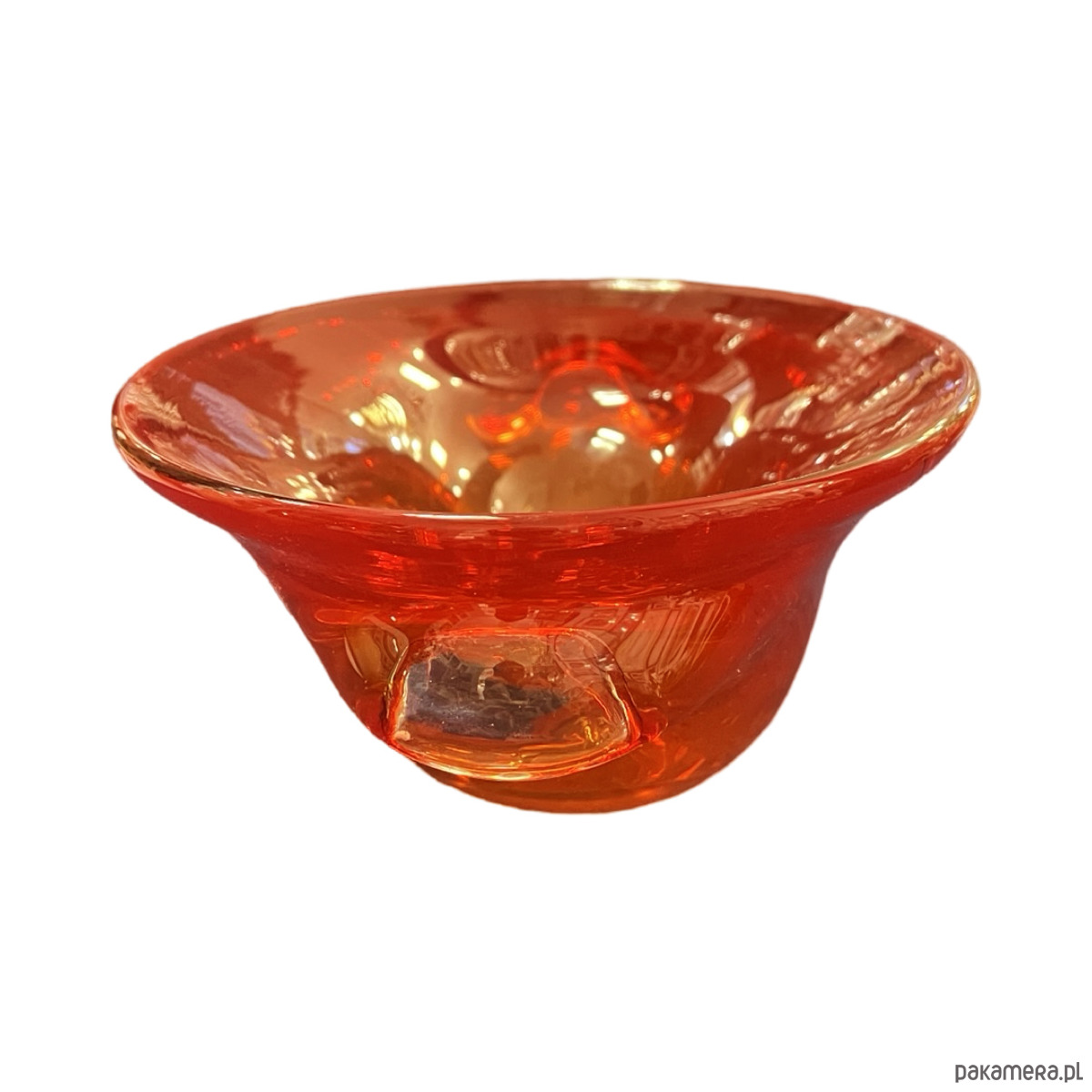 Ognista czerwono-żółta szklana misa w stylu mid-century modern wyprodukowana w latach 70. w Polsce przez Hutę Szkła Sudety w Szczytnej Śląskiej zaprojektowana przez Ewę Gerczuk-Moskaluk . Przedmiot wykonany ręcznie ze szkła sodowego, w kolorze czerwonym z zejściem w żółty z lekkim połyskiem opalizującym. Zachowany jest w bardzo dobrym stanie, bez uszkodzeń.