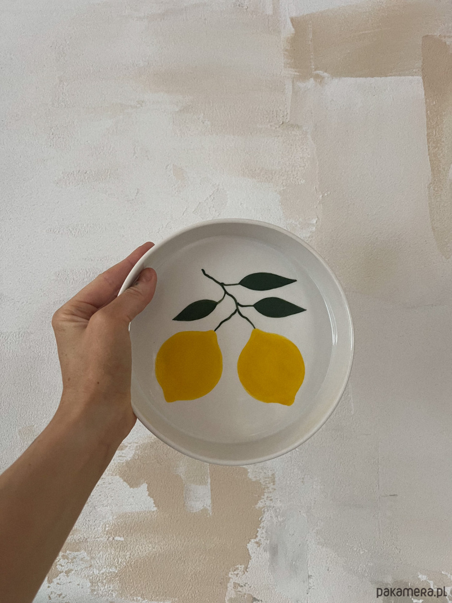 Porcelanowa miska z ręcznie malowanymi cytrynami.