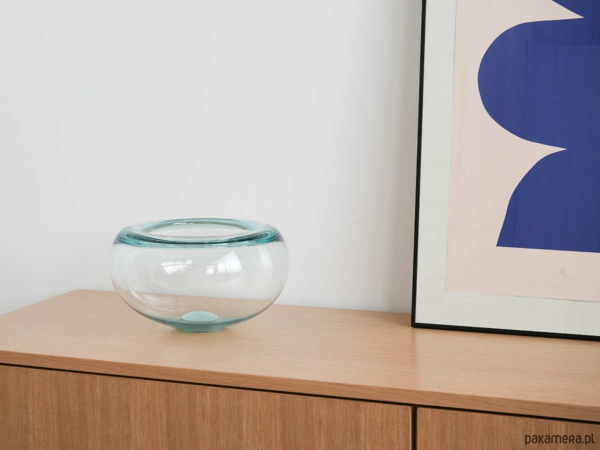 Ikoniczna, ręcznie formowana misa z serii Provence, zaprojektowana w 1955 roku przez Per Lütkena, jednego z najwybitniejszych duńskich projektantów szkła. Wykonana ze szkła w delikatnym, niebiesko-turkusowym odcieniu, charakteryzuje się organiczną, obłą formą i minimalistyczną elegancją typową dla duńskiego wzornictwa modernistycznego. Ponadczasowy klasyk designu skandynawskiego – kolekcjonerska i dekoracyjna misa, która pięknie wyeksponuje owoce lub stanie się centralnym punktem aranżacji.