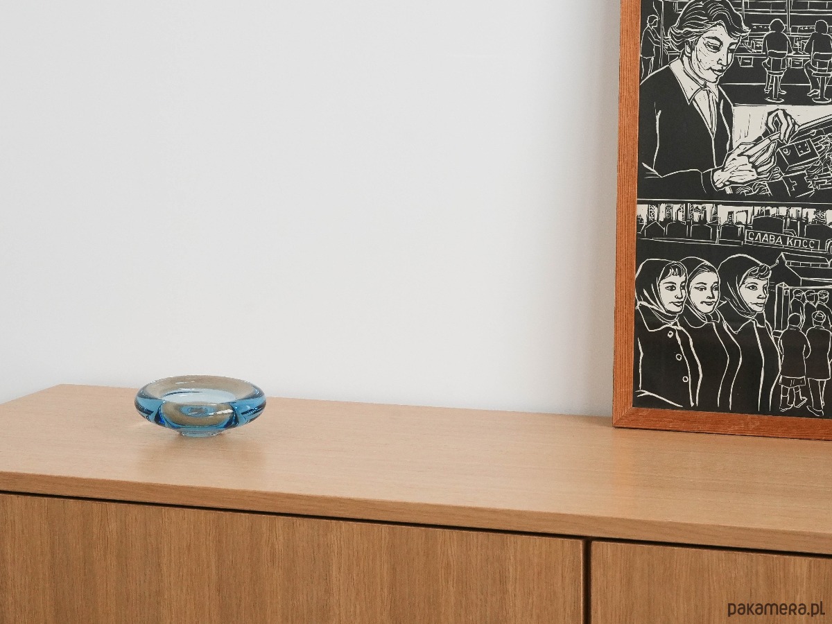 Szklana misa projektu Per'a Lütken'a dla duńskiej huty szkła Holmegaard. Wykonana została w latach 60-tych.