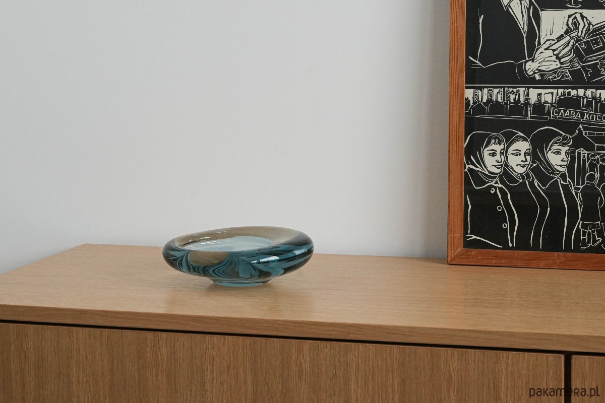 Szklana misa projektu Per'a Lütken'a dla duńskiej huty szkła Holmegaard. Wykonana została w latach 60-tych.
