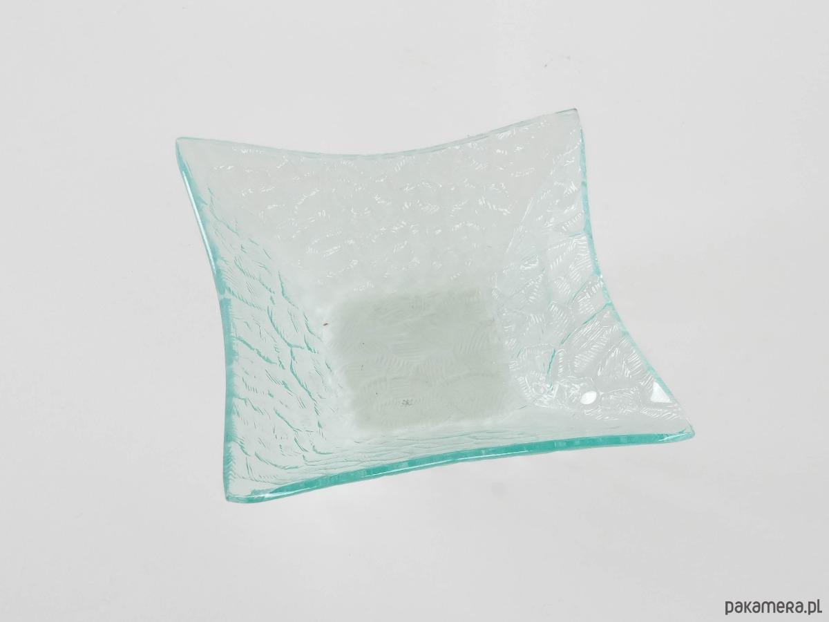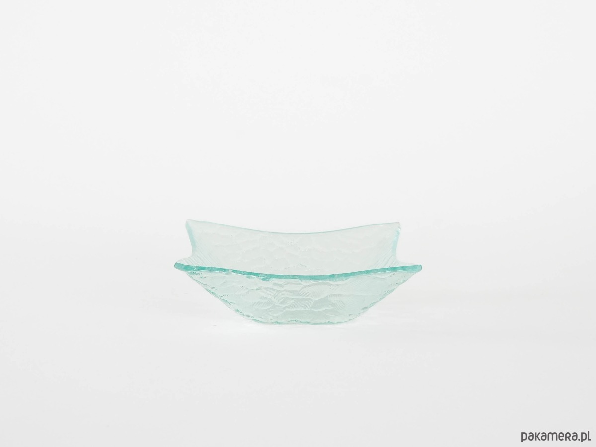 Urocza miska z grubego, tłoczonego szkła w odcieniu subtelnej zieleni morskiej. Jej organiczna faktura i geometryczna forma przywodzą na myśl styl skandynawskiego szkła artystycznego z połowy XX wieku – pełen naturalnego światła i strukturalnego piękna. Idealna jako miseczka na drobiazgi, biżuterię, tealight lub po prostu dekoracyjny akcent vintage. Delikatna, ale solidna – łączy prostotę i elegancję typową dla nordyckiego designu. Ponadczasowy detal dla miłośników szkła kolekcjonerskiego mid-century.
