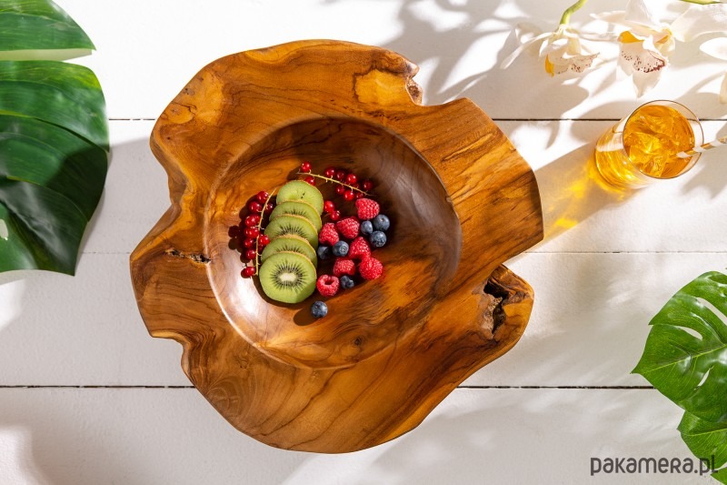 Ciekawa, nietuzinkowa misa Wood Plate jest niezwykłym dodatkiem dla Twojego domu. Drewno teakowe odmieni Twój wystrój domu i zagości w nim nutka natury. Każdy doceni piękno i naturalność Twojej zastawy.