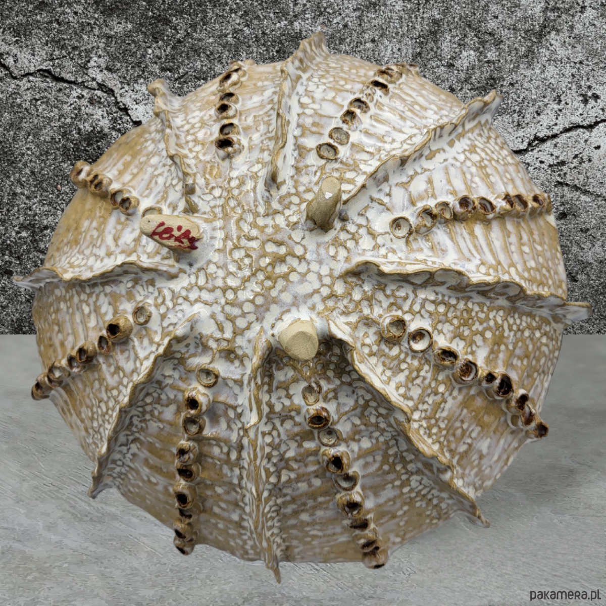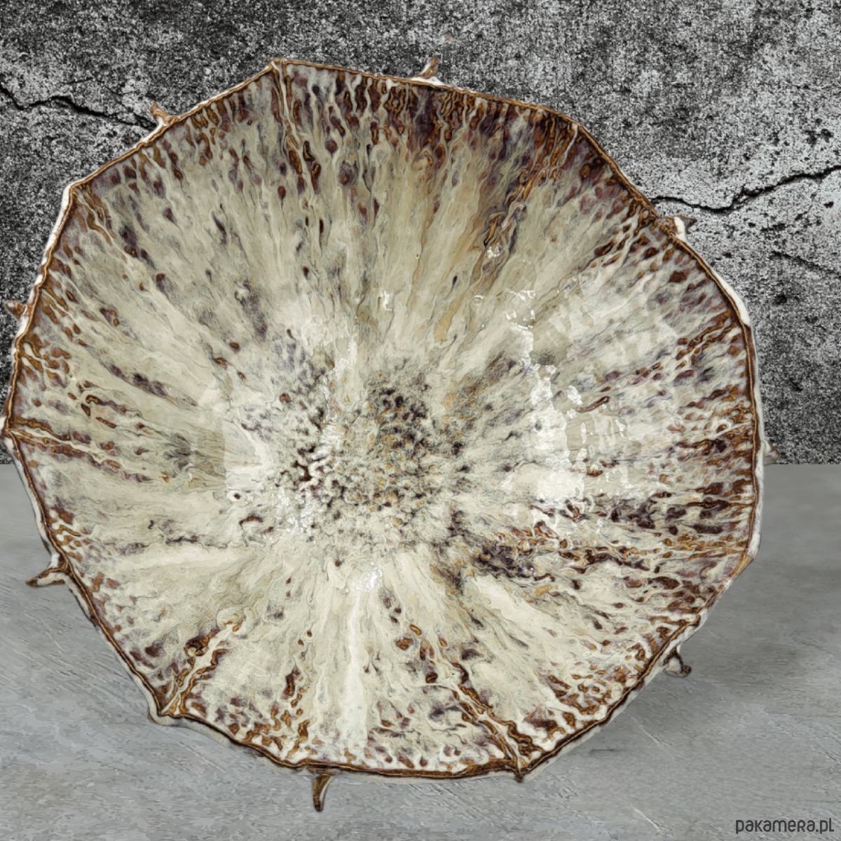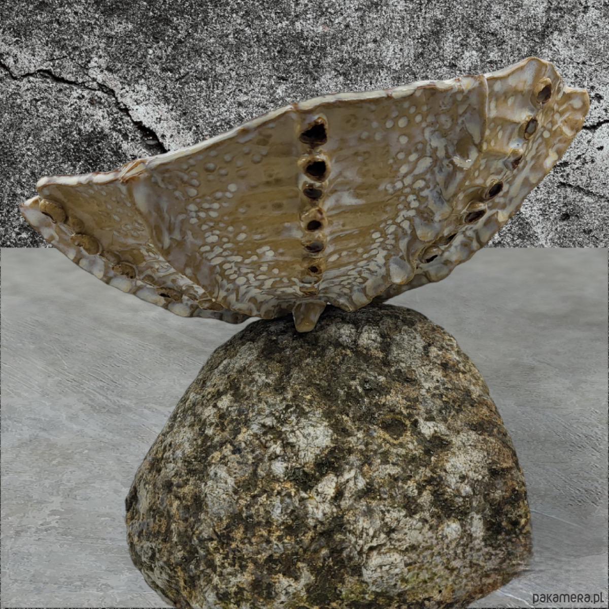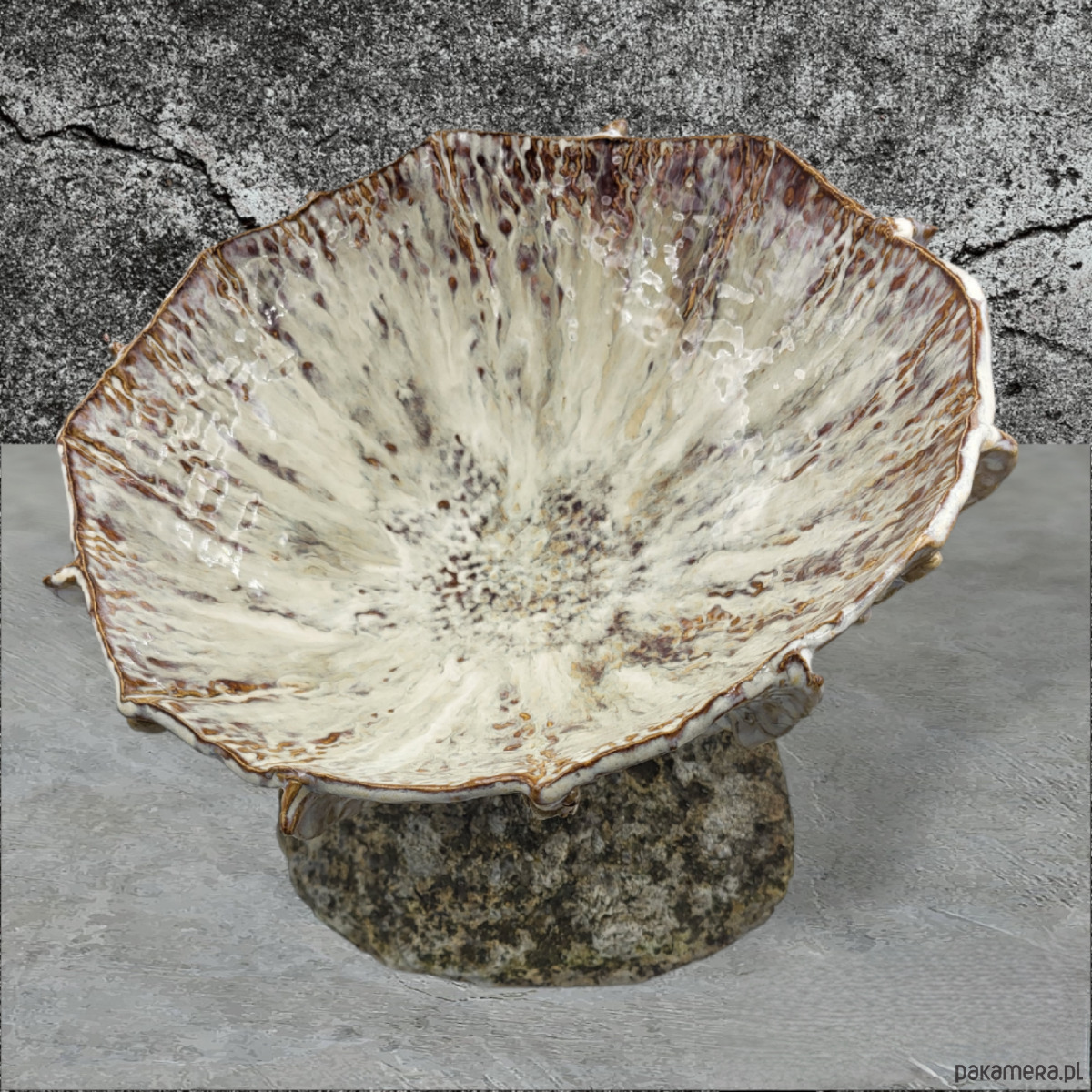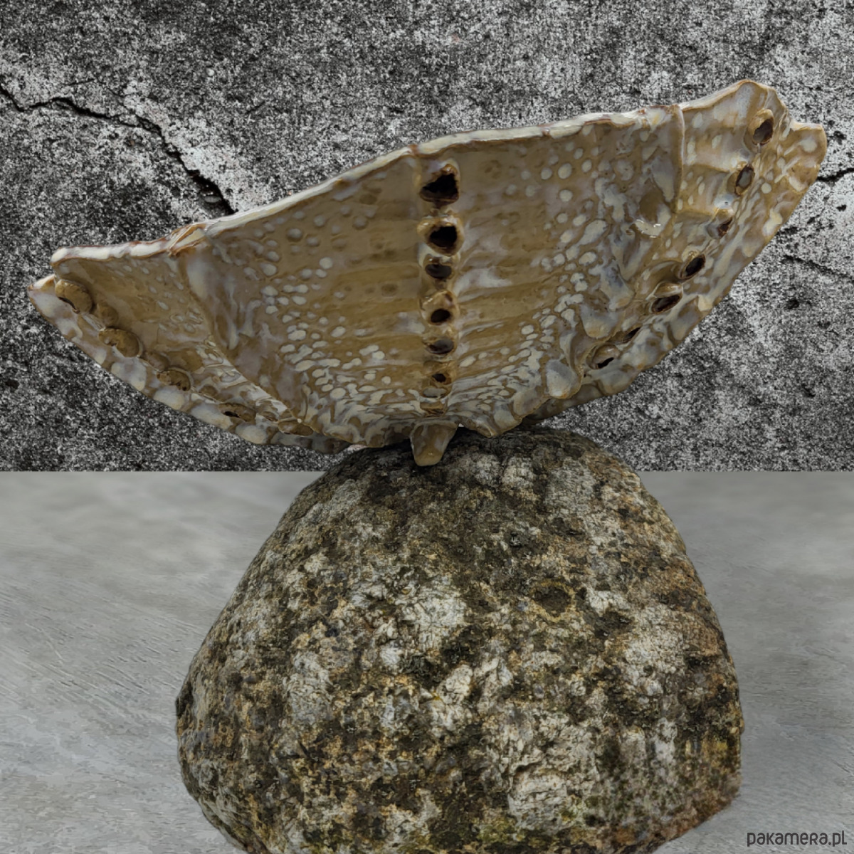 Ręcznie formowana misa na trzech stópkach, przywodząca na myśl morskie podróże.