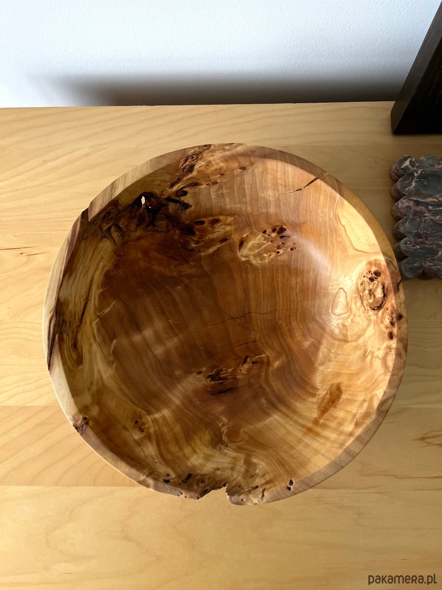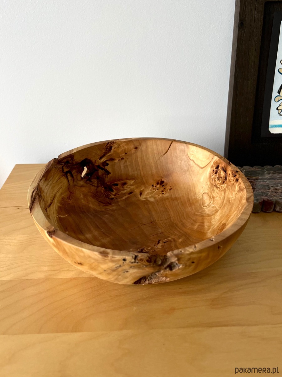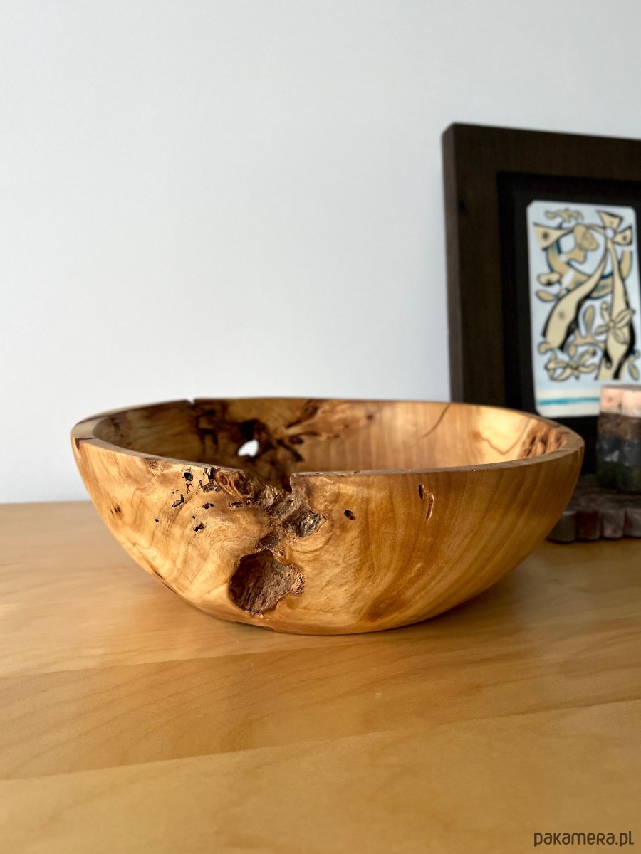 Klasyczna misa z litego kawałka drewna czeczoty. Czeczota nadaje charakter misy i wyjątkowe ubarwienie. Została pokryta olejem nadającym się, zgodnie z deklaracją producenta, do kontaktu z żywnością.