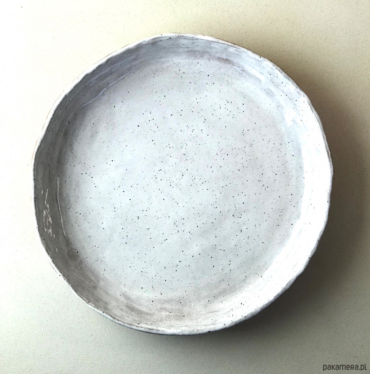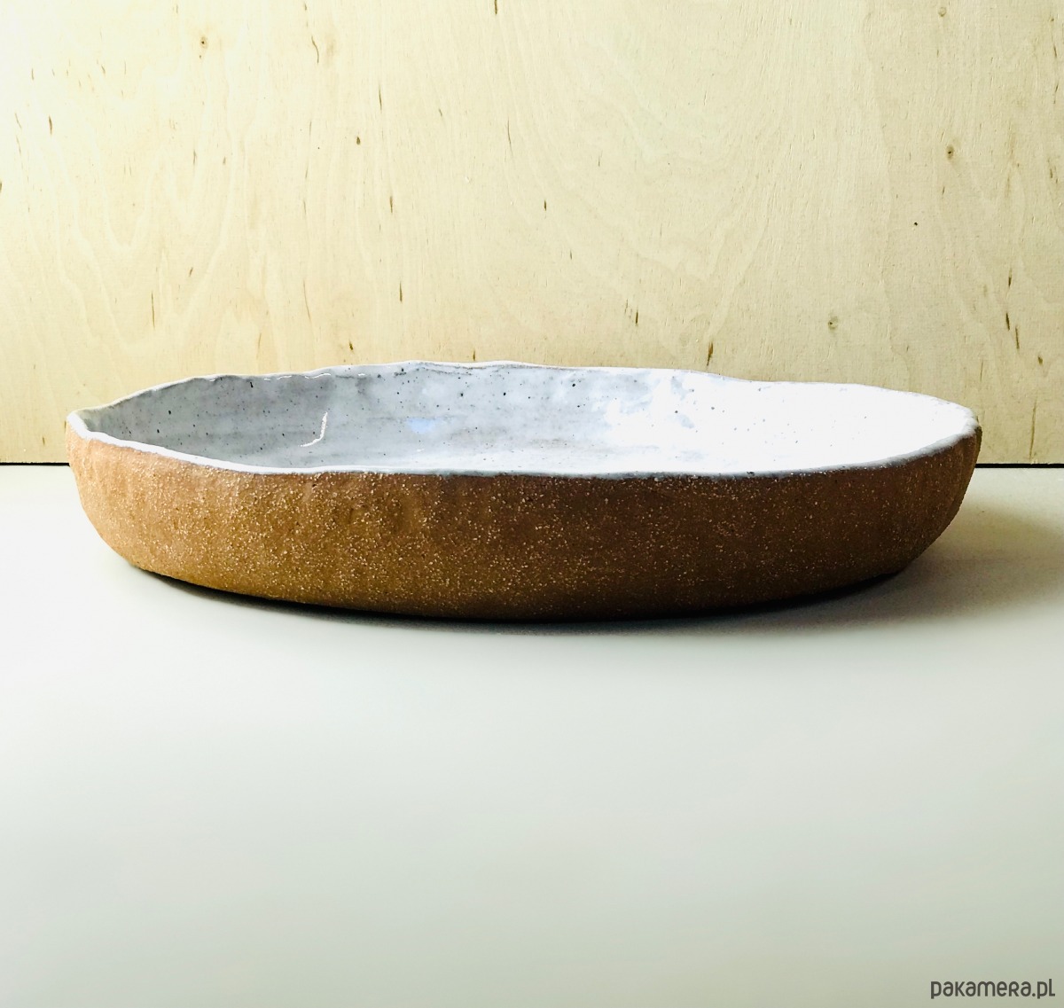 Ceramika została wykonana ręcznie w krakowskiej pracowni ceramicznej CESELE. Atrybutem każdego naczynia jest jego niepowtarzalny charakter. Funkcjonalna ceramika użytkowa wzbogaca domową przestrzeń i nadaje codziennym czynnością wyjątkową oprawę. Misa została wykonana z czerwonej, szamotowej gliny a jej wnętrze pokryte białym, nakrapianym szkliwem. Uwydatniona faktura gliny nadaje ceramice oryginalny, rustykalny charakter.
