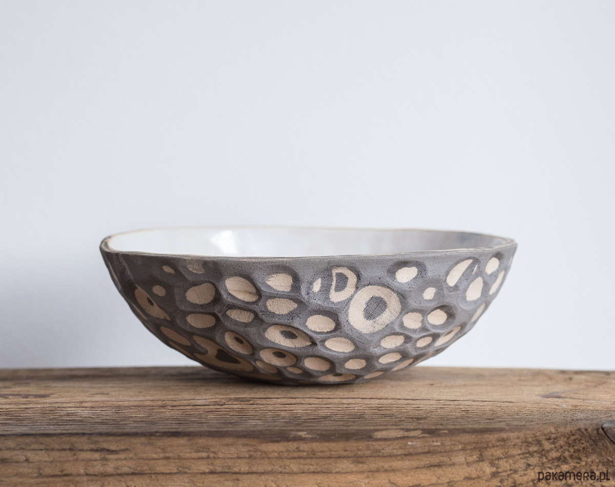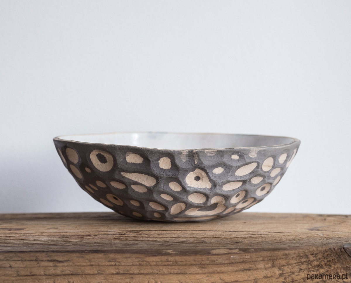 miseczka ręcznie lepiona z łączonych glin jasnej i ciemnej