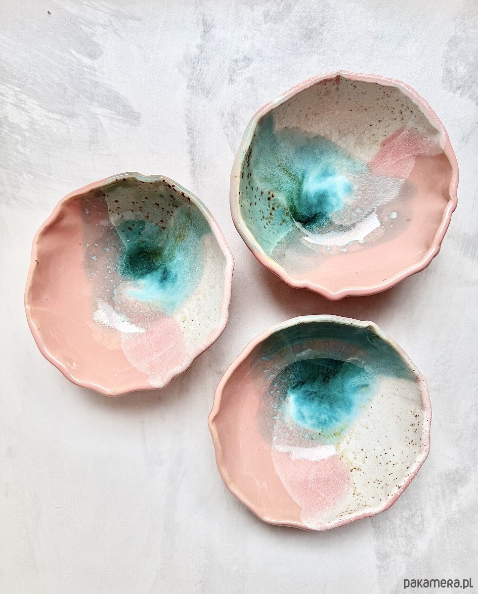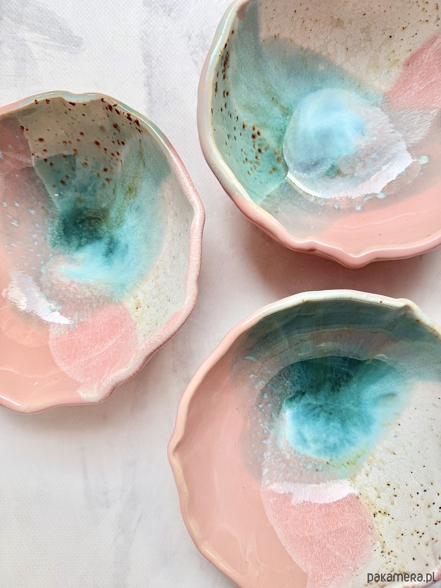 Każda miseczka może różnić się delikatnie we wzorach i kolorach, gdyż produkty wyrabiam oraz szkliwię ręcznie. To w ceramice kocham najmocniej – wszystko ma swoją oryginalność i niepowtarzalność.