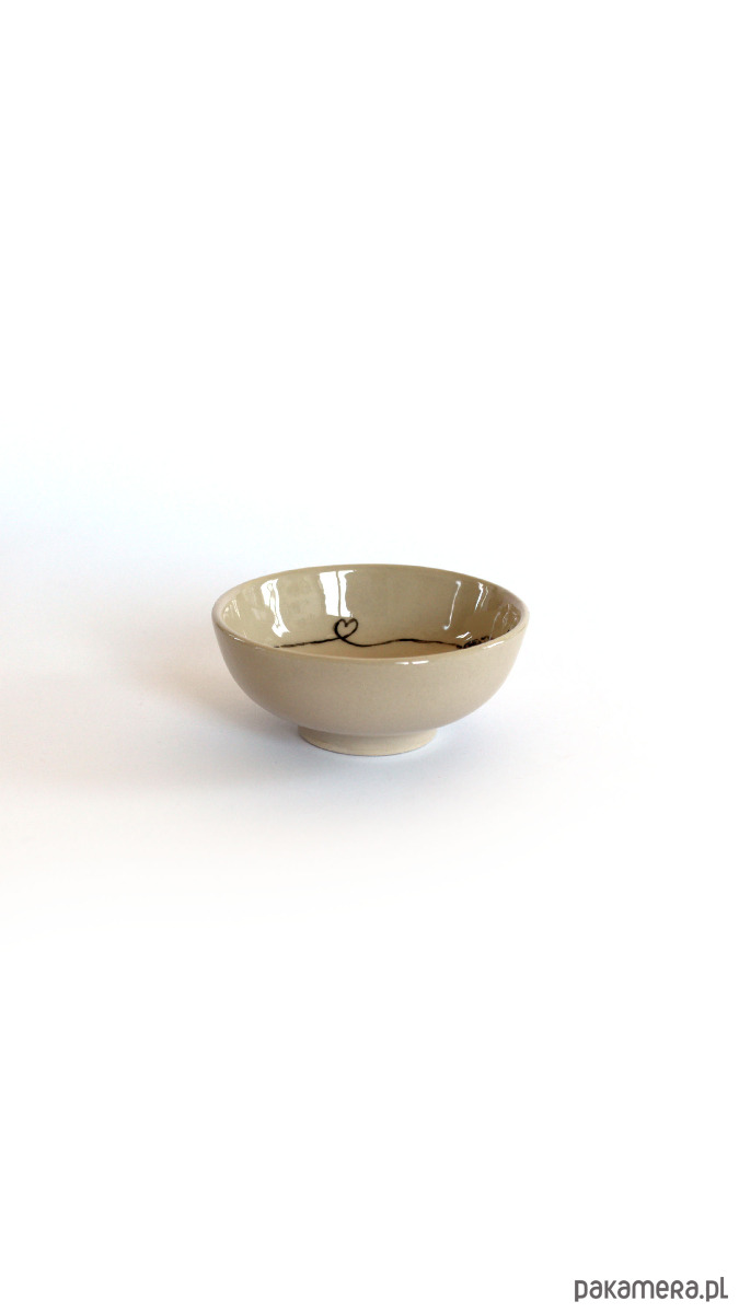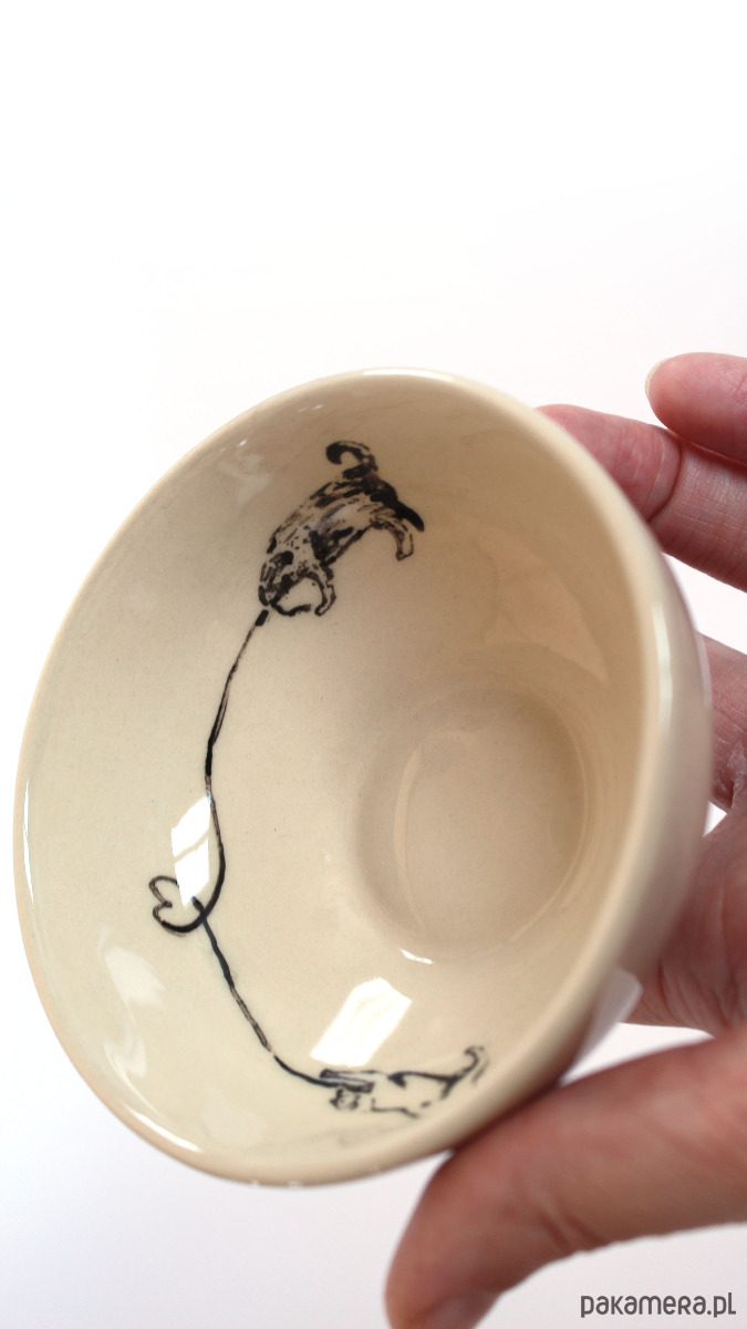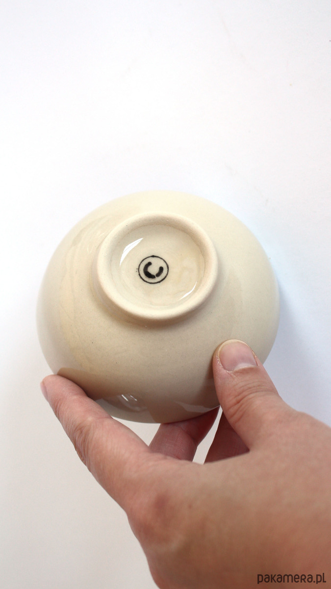Malowana farbami podszkliwnymi. Miseczka wykonana w małej krakowskiej pracowni ceramicznej. Zastosowano wysokiej jakości kremową glinę kamionkową, 100% handmade. Szkliwiona błyszczącym, transparentnym szkliwem. Sygnowana. Miskę można myć w zmywarce.