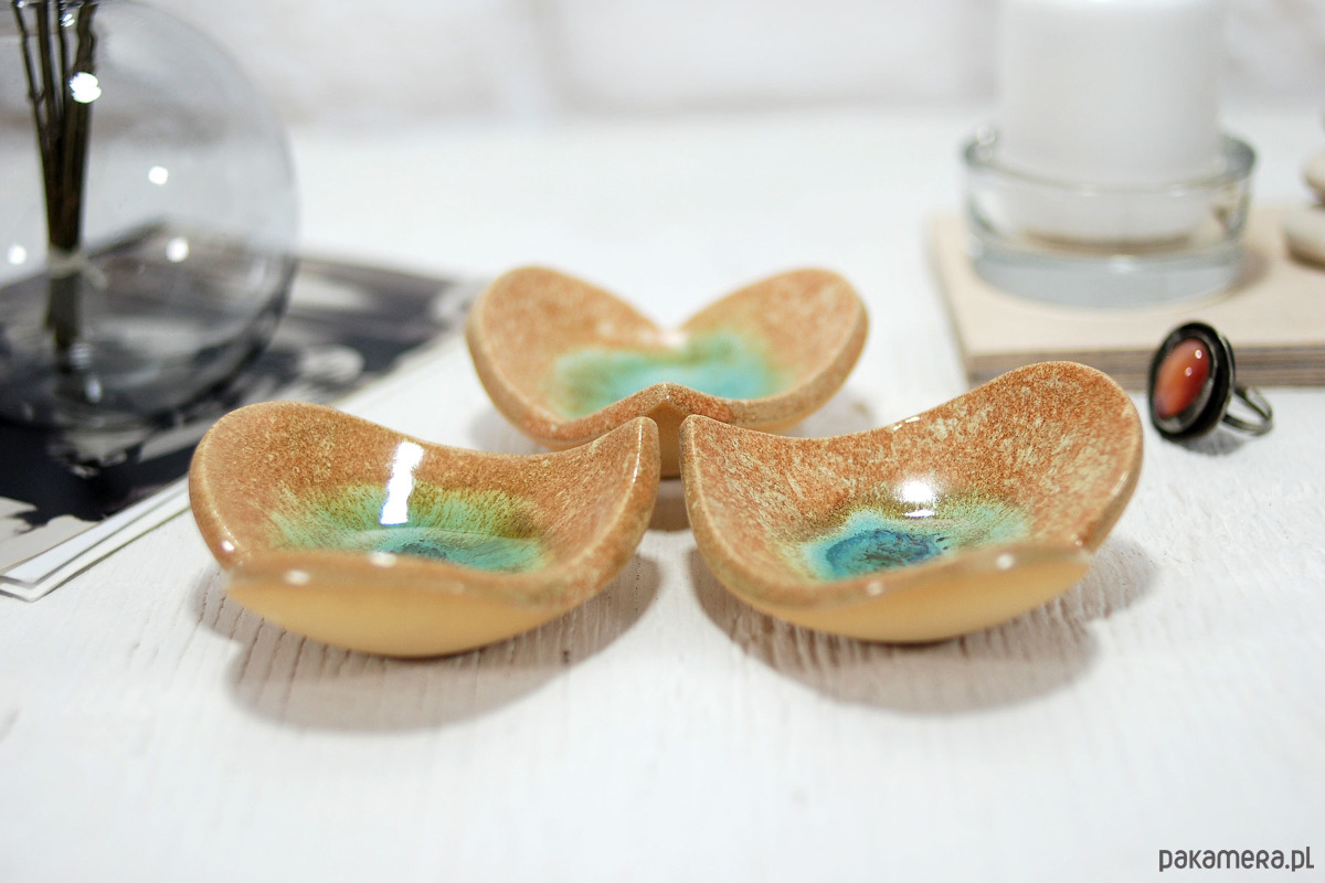 Ręcznie robiona i malowana ceramiczna miseczka, którą możesz wykorzystać do przechowywania swoich małych skarbów - biżuterii, pierścionków czy innych drobiazgów. Sprawdzi się również jako podstawka na łyżeczkę, herbatę, świecę lub tealight.