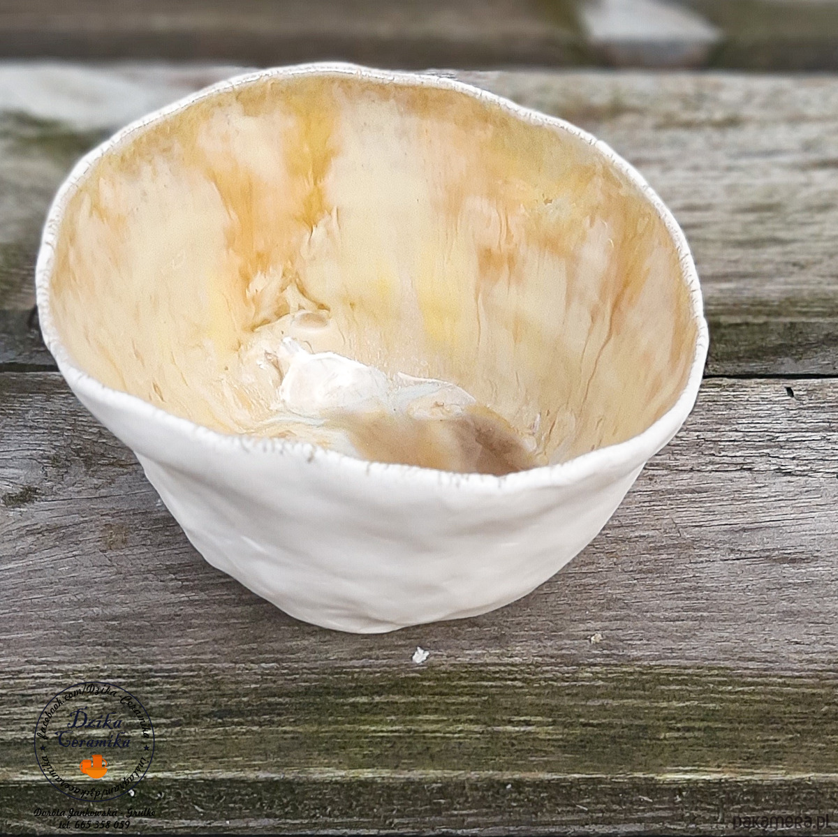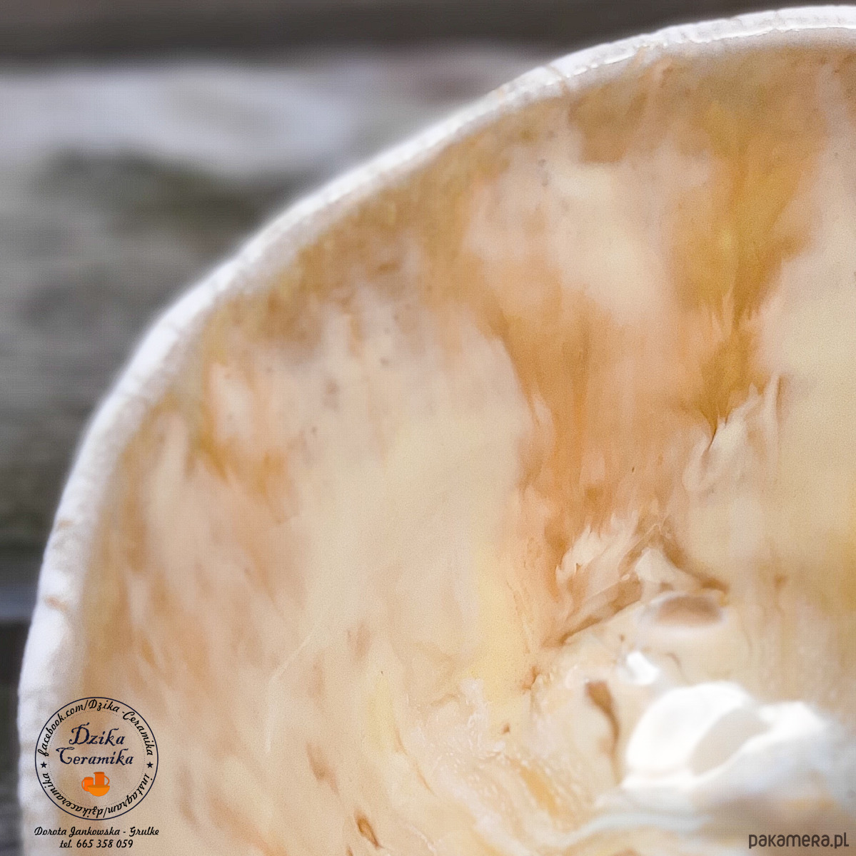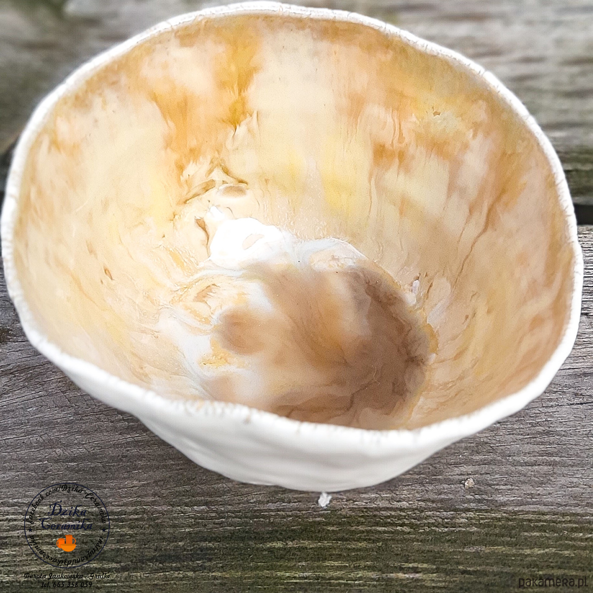 Ta porcelanowa miseczka została od wewnątrz pokryta autorskim szkliwem,