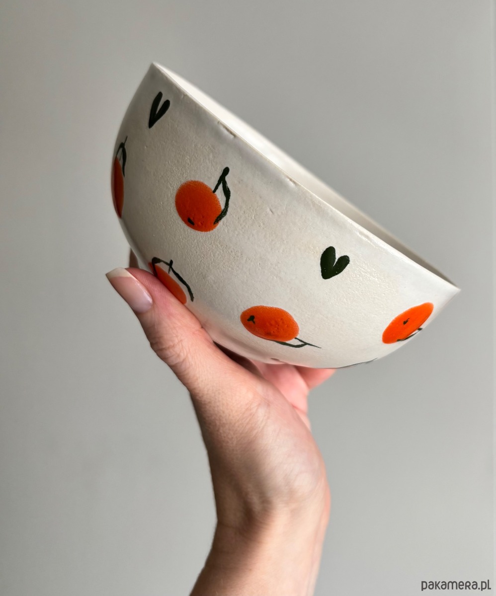 Ręcznie wykonana ceramiczna miseczka z serii •MANDARINS• ozdobiona uroczymi pomarańczami 🍊 i zielonymi serduszkami w różnych rozmiarach 💚