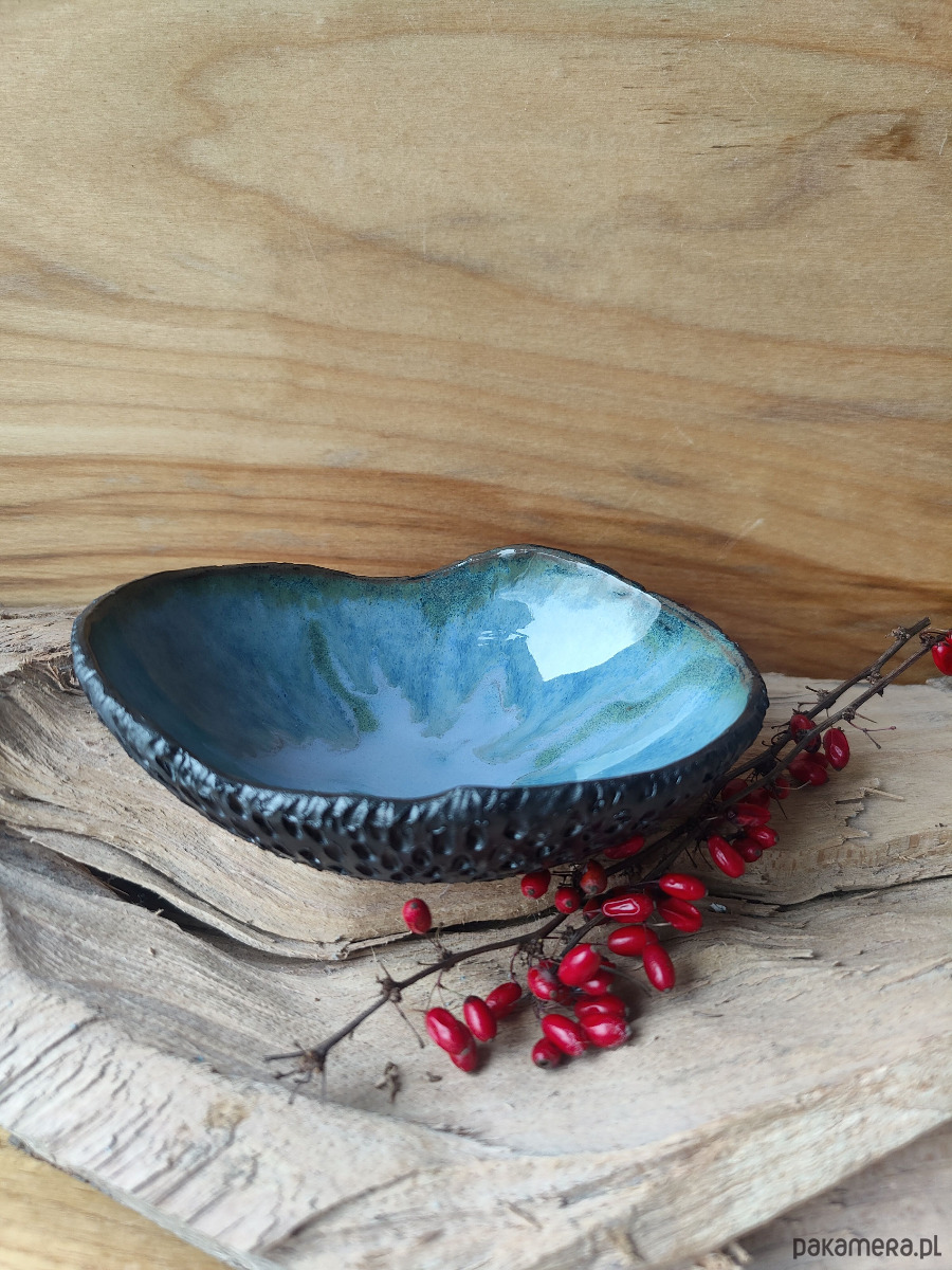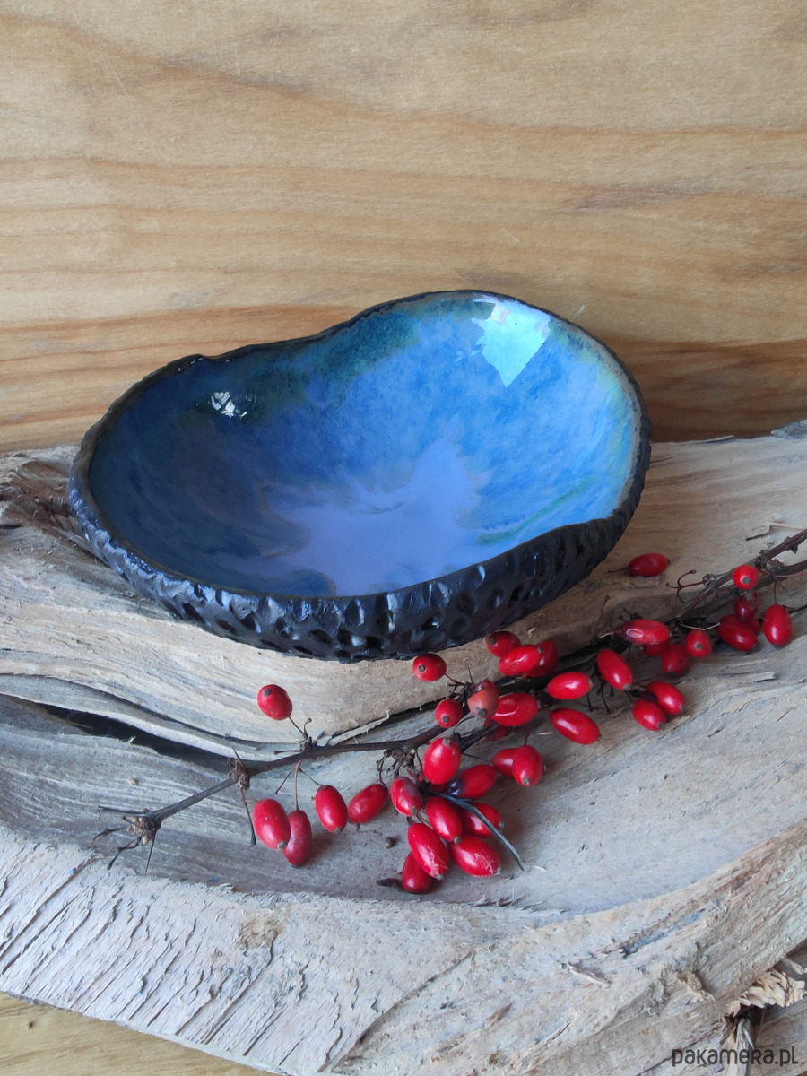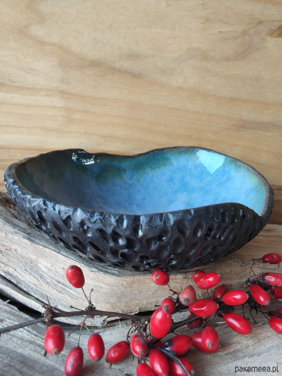Miska ceramiczna formowana ręcznie z czarnej gliny .