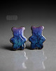 Efektowne kolczyki w formie sztyftów, ręcznie wykonane z delikatnej czekoladowobrązowej gliny kamionkowej, jednostronnie szkliwione mieszanką fioletowo błękitnych szkliw z efektem plamek, na antyalergicznych sztyftach w kolorze srebrnym.długość elementu ceramicznego ok. 15mm, Polecam