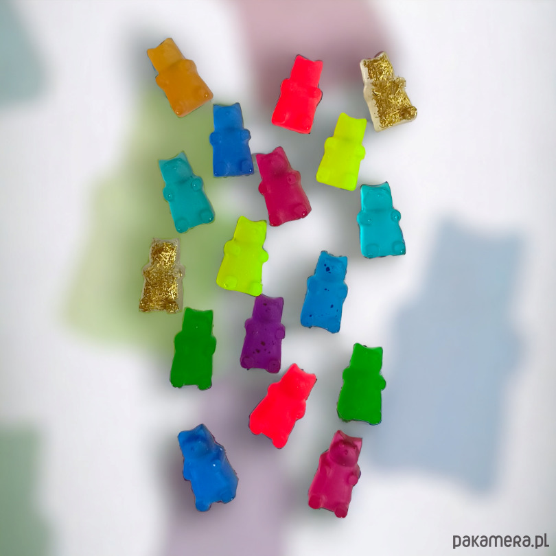 Misie z żywicy - kolczyki - wkrętki - sztyfty - NEON RED