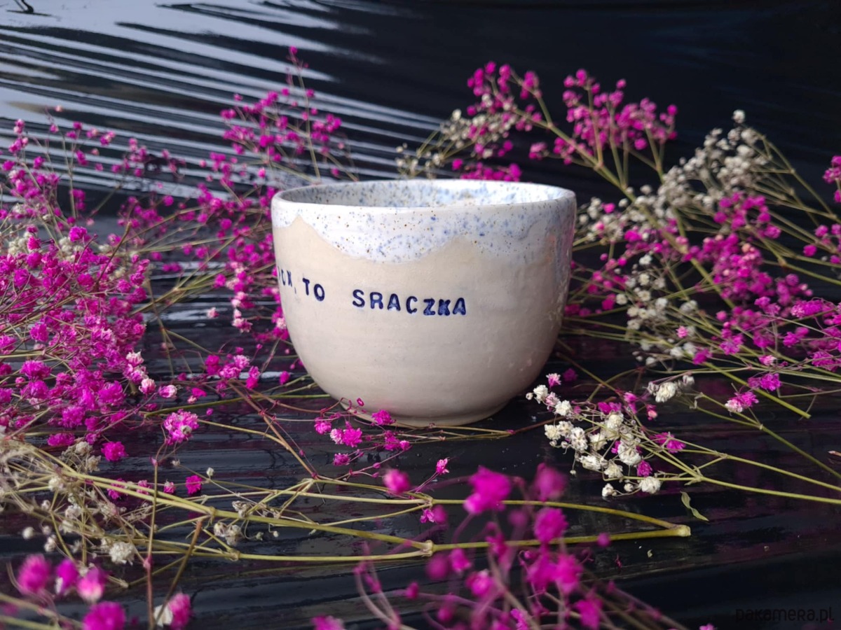 Miska ceramiczna z napisem "Jak nie urok to sraczka"