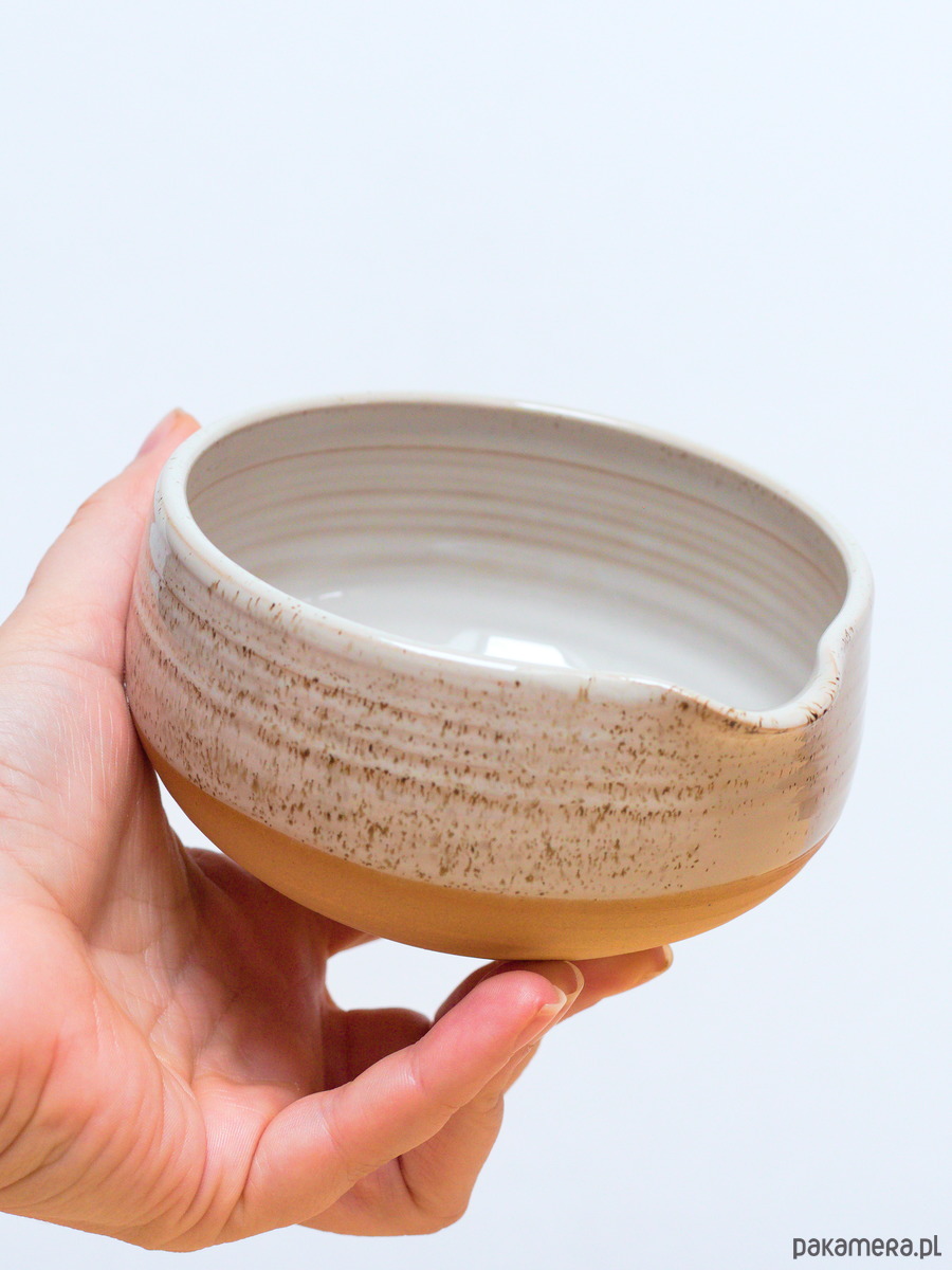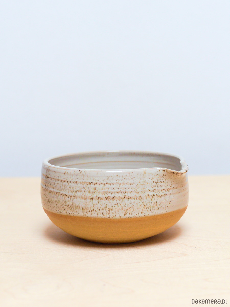 Prosta i stabilna miska to mieszania herbaty matcha z dzióbkiem do przelewania.