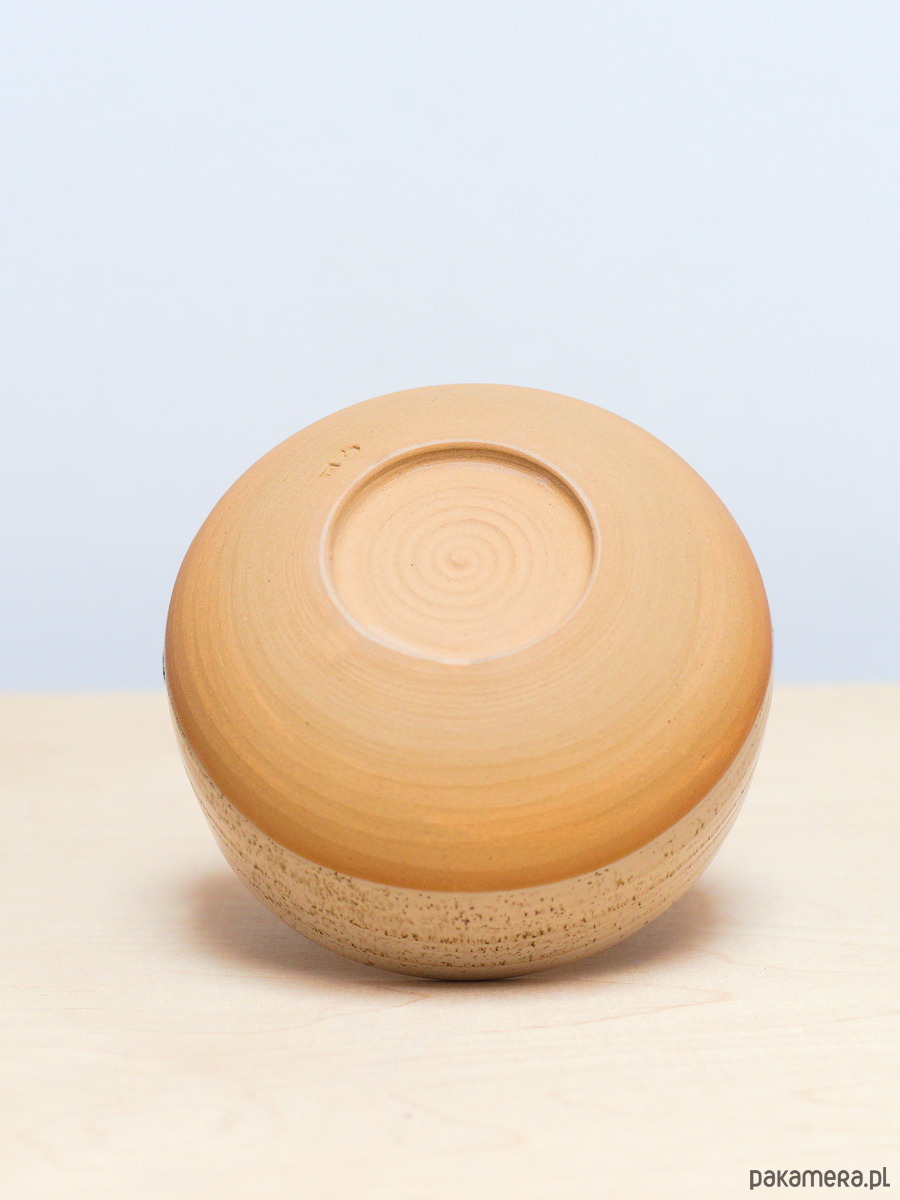 Spód tej czarki jest odsłonięty i ukazuje naturalny kolor gliny.