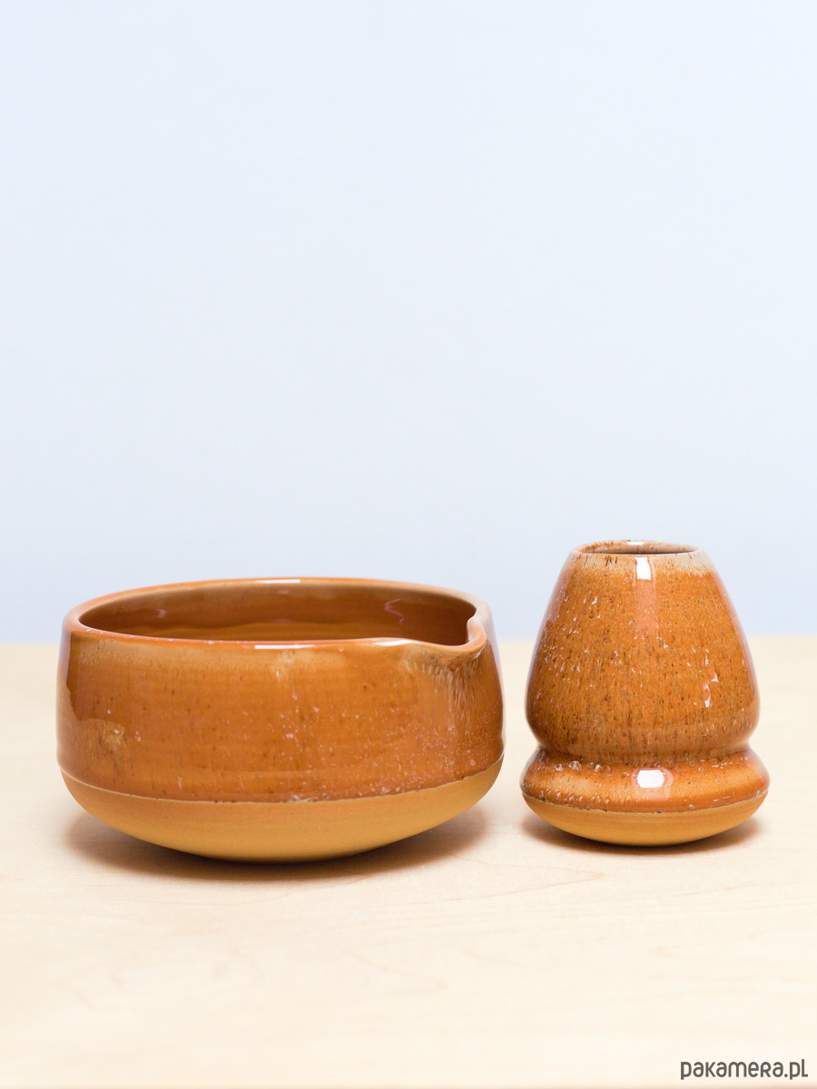 Zestaw do Matcha Miska + Stojak - solony karmel