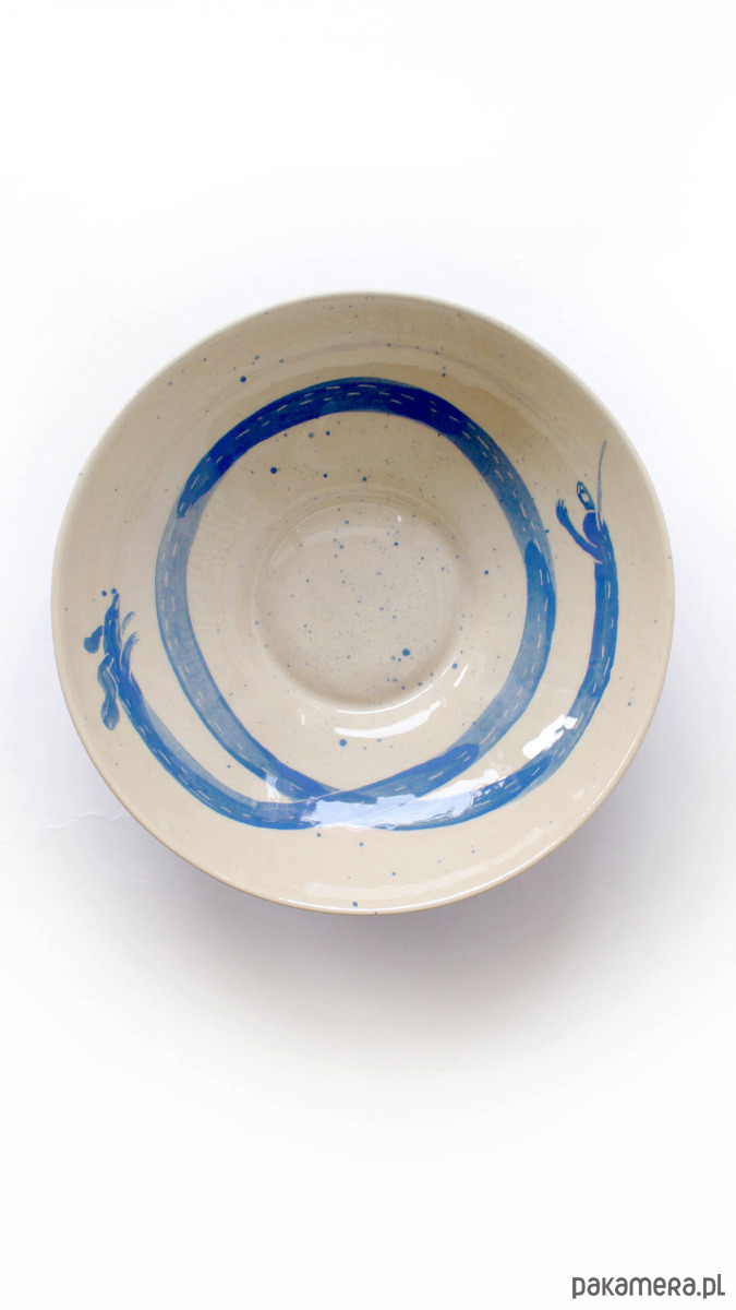 Grafika jamniczka ręcznie malowana farbami podszkliwnymi. Miska wykonana z wysokiej jakości kremowej gliny, 100% handmade. Szkliwiona błyszczącym, transparentnym szkliwem. Sygnowana. Miskę można myć w zmywarce.