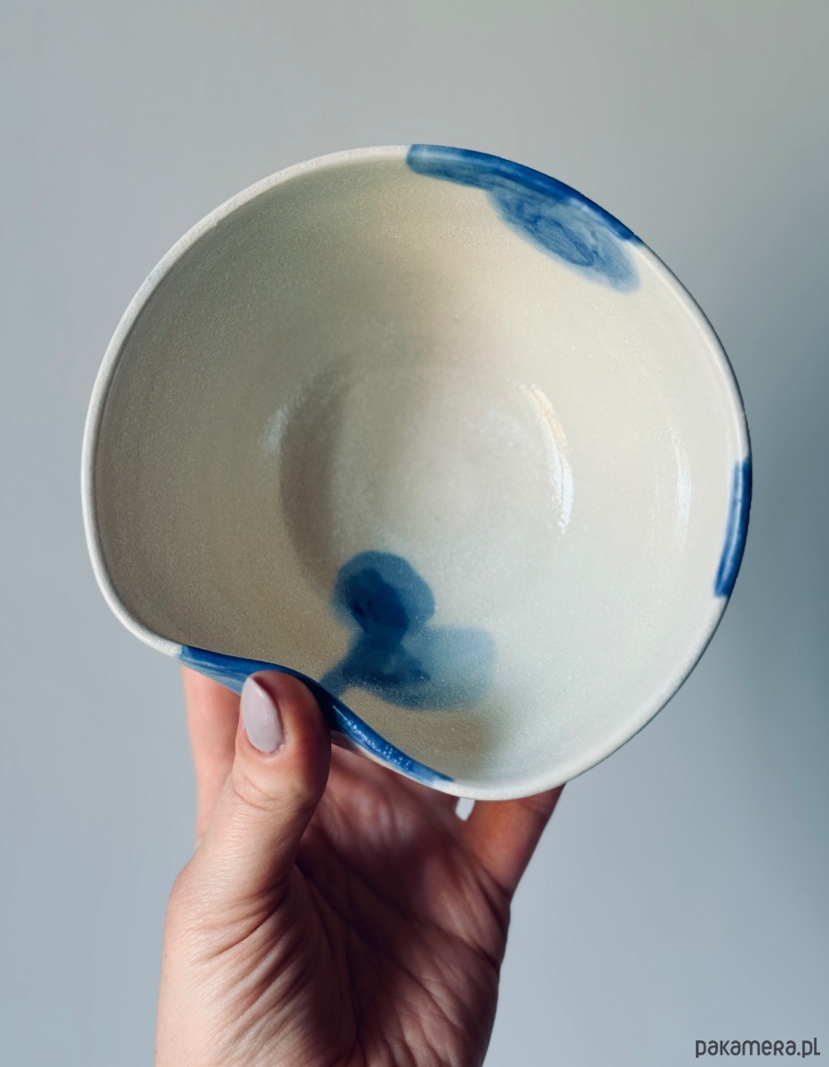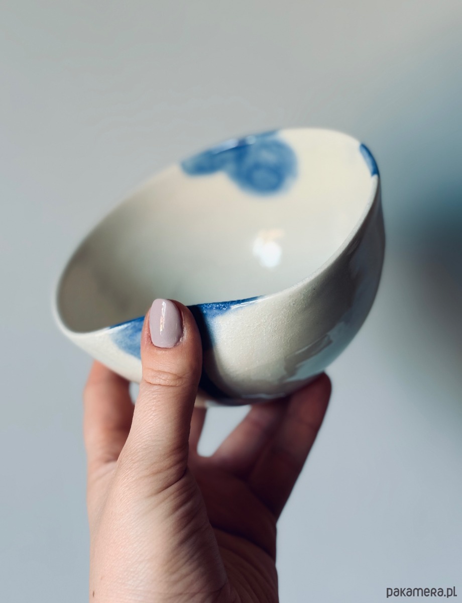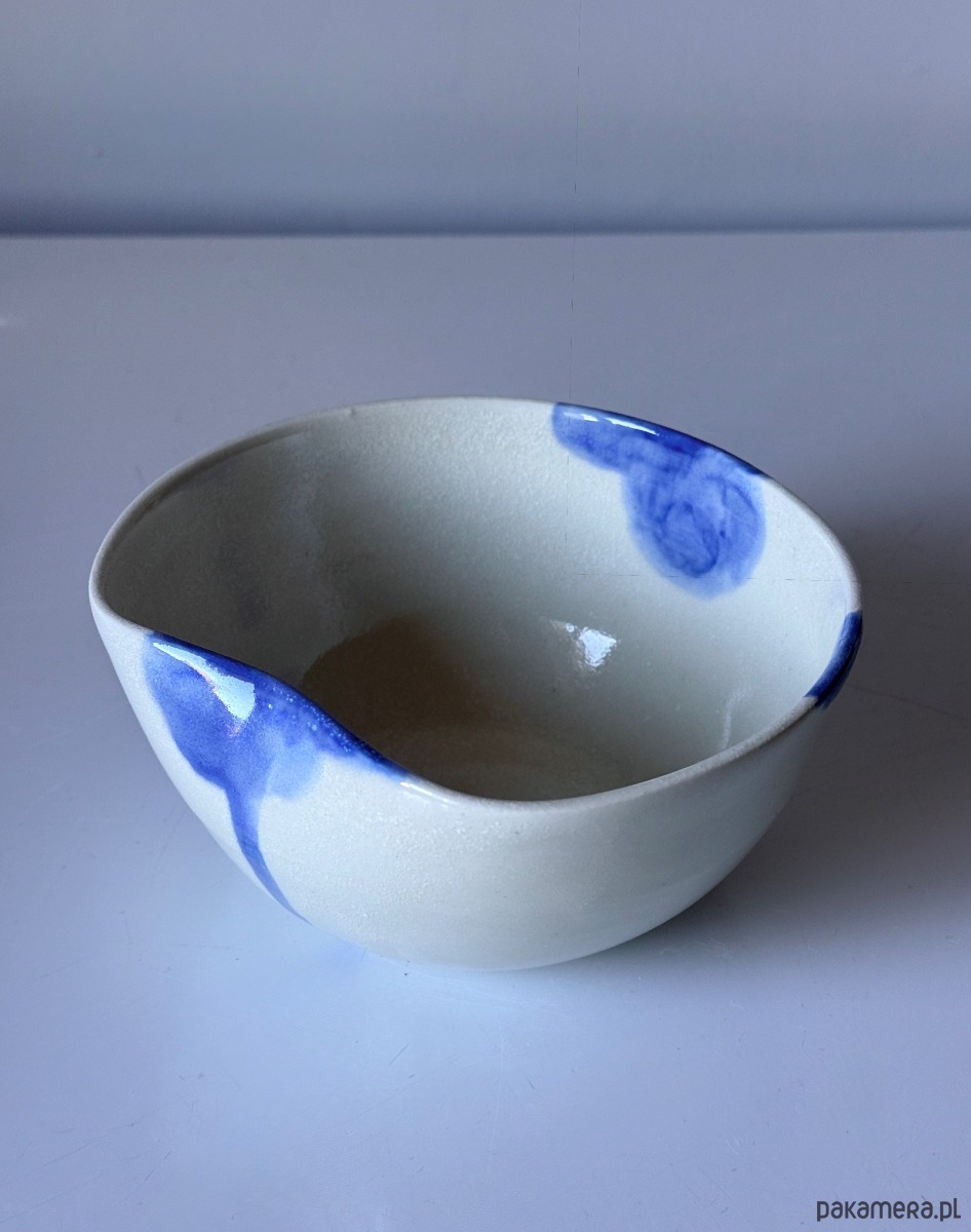 Ręcznie robiona i malowana miska z akwarelowym motywem w kolorze kobaltu. Wykonana z białej gliny, na kole garncarskim.