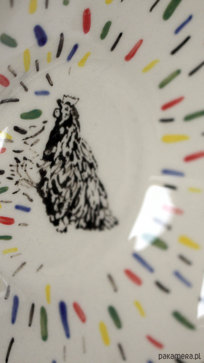 Grafika ręcznie malowana farbami podszkliwnymi. Miska wykonana w małej krakowskiej pracowni ceramicznej. Zastosowano wysokiej jakości kremową gline kamionkową, 100% handmade. Szkliwiona błyszczącym, transparentnym szkliwem. Sygnowana. Miskę można myć w zmywarce.
