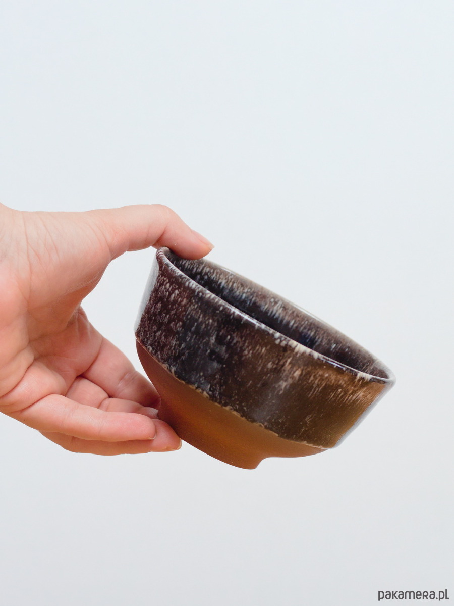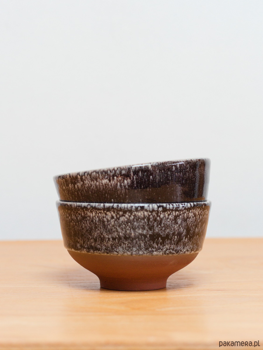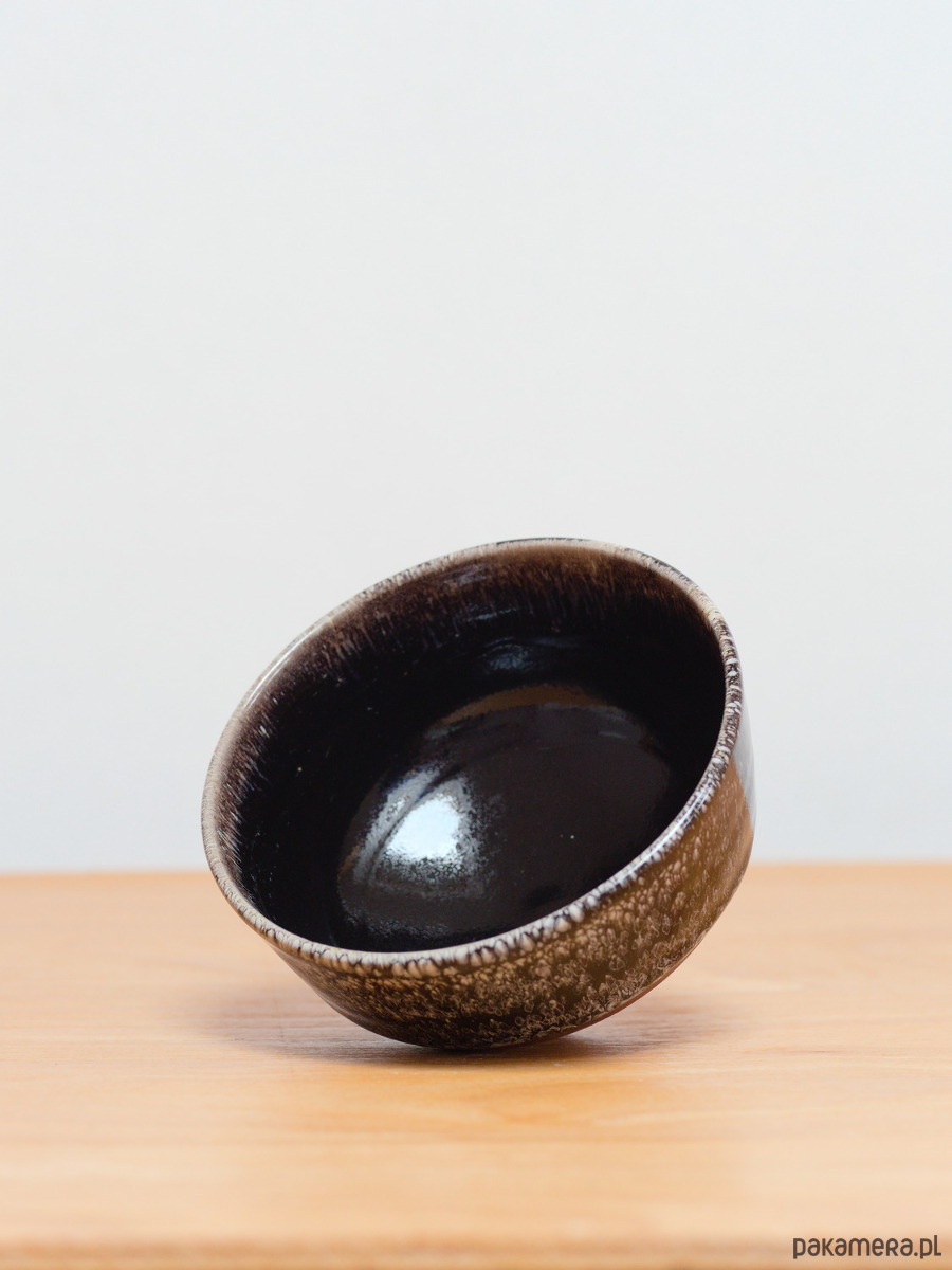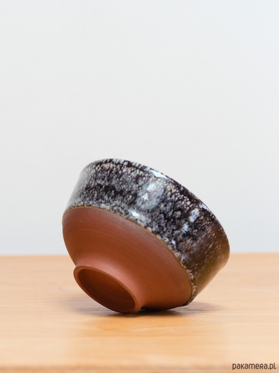 Miska jest szkliwiona na kolor Błędny Ognik - w pełni czarna powierzchnia z jasnymi plamkami o różnej gęstości. Powierzchnia szkliwa ma błyszczące wykończenie.Odsłonięta glina jest ciemno ruda.