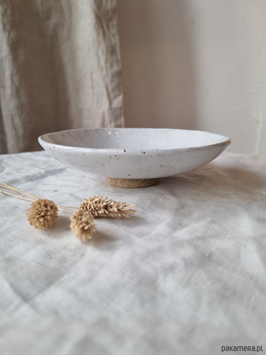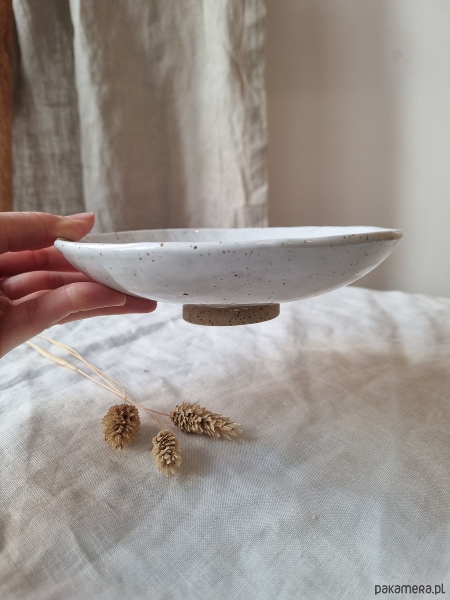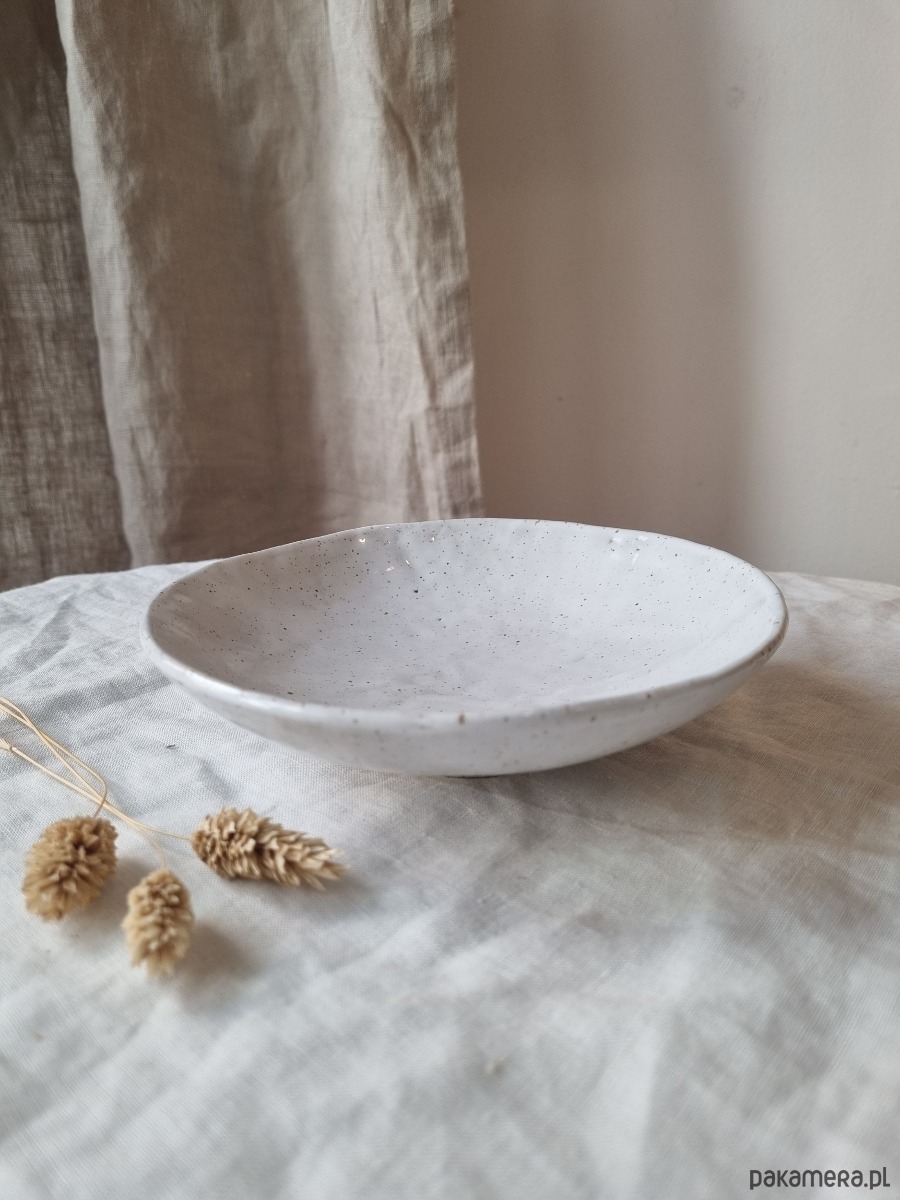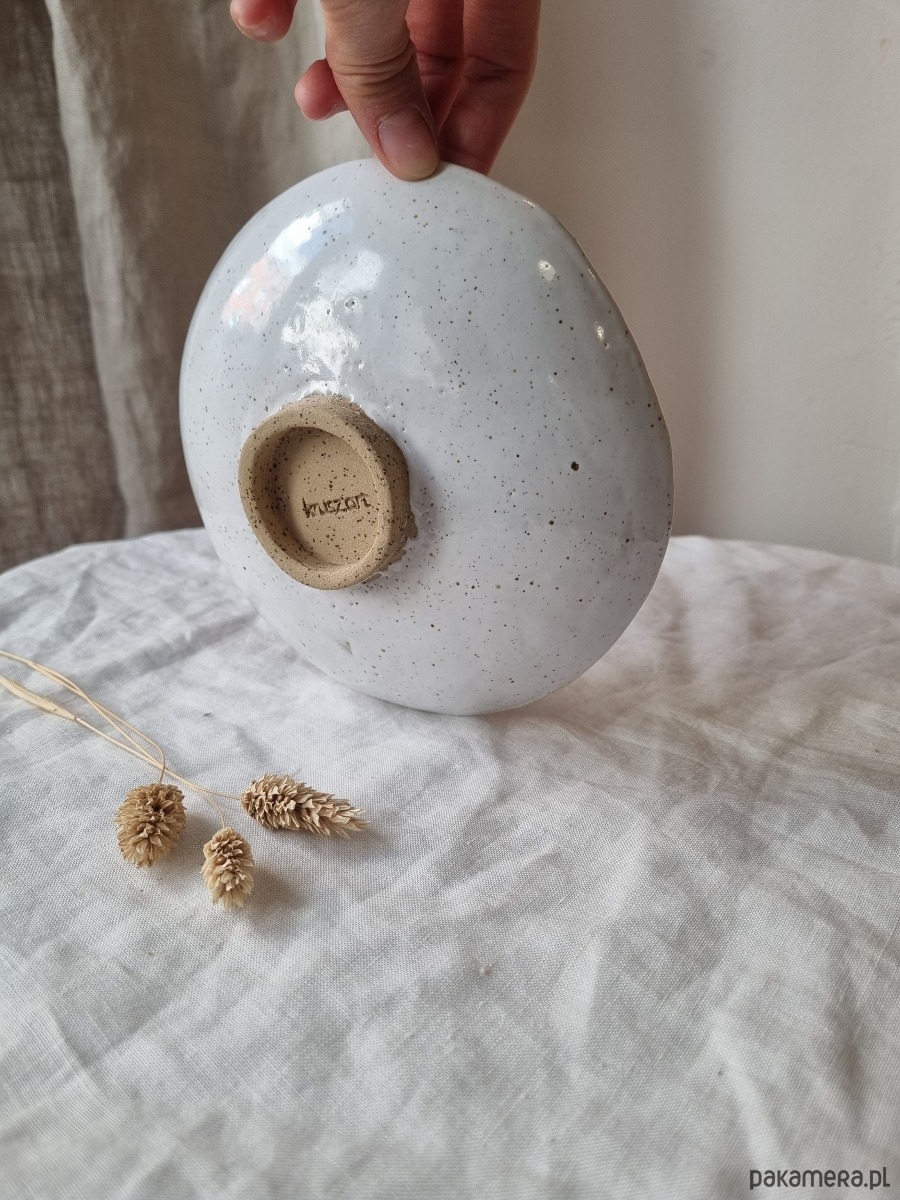 Kolor: beżowa glina w brązowe piegi pokryta białym szkliwem.