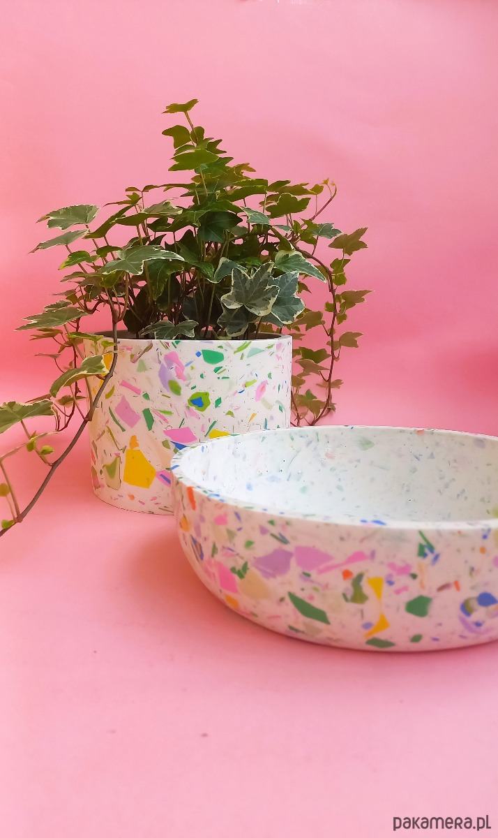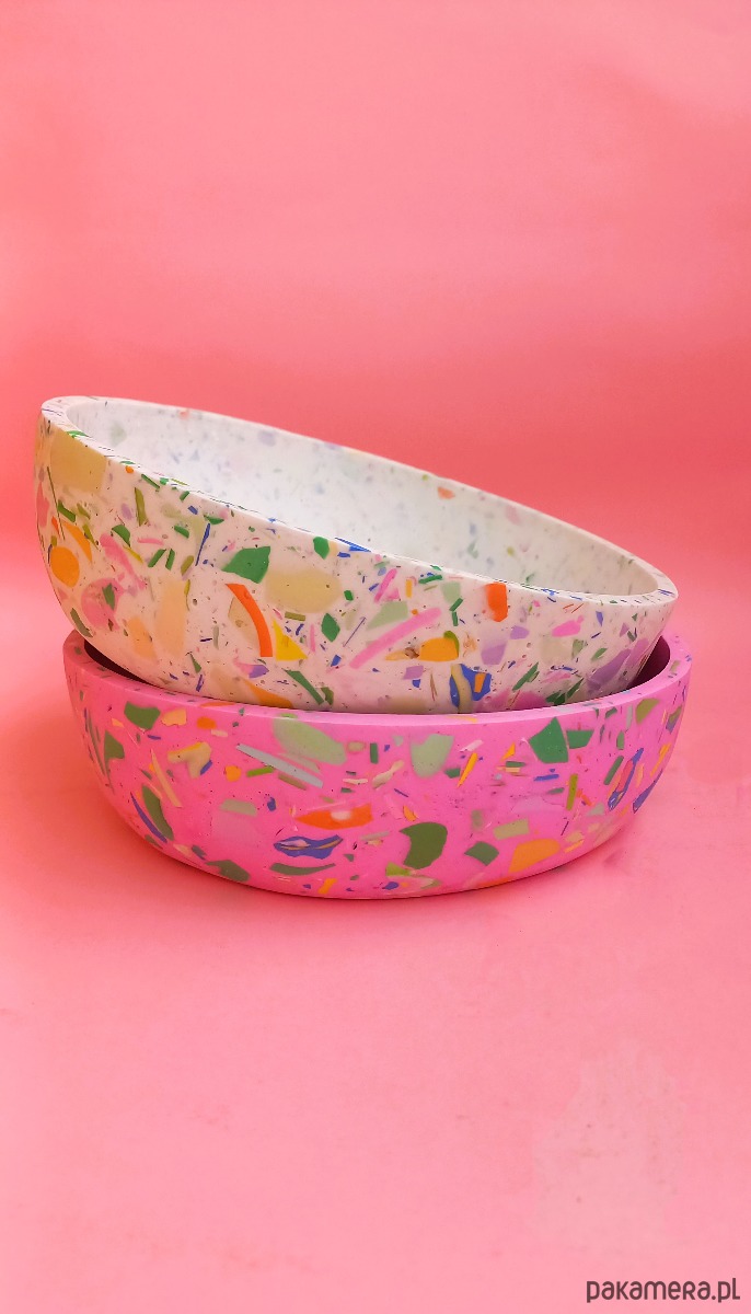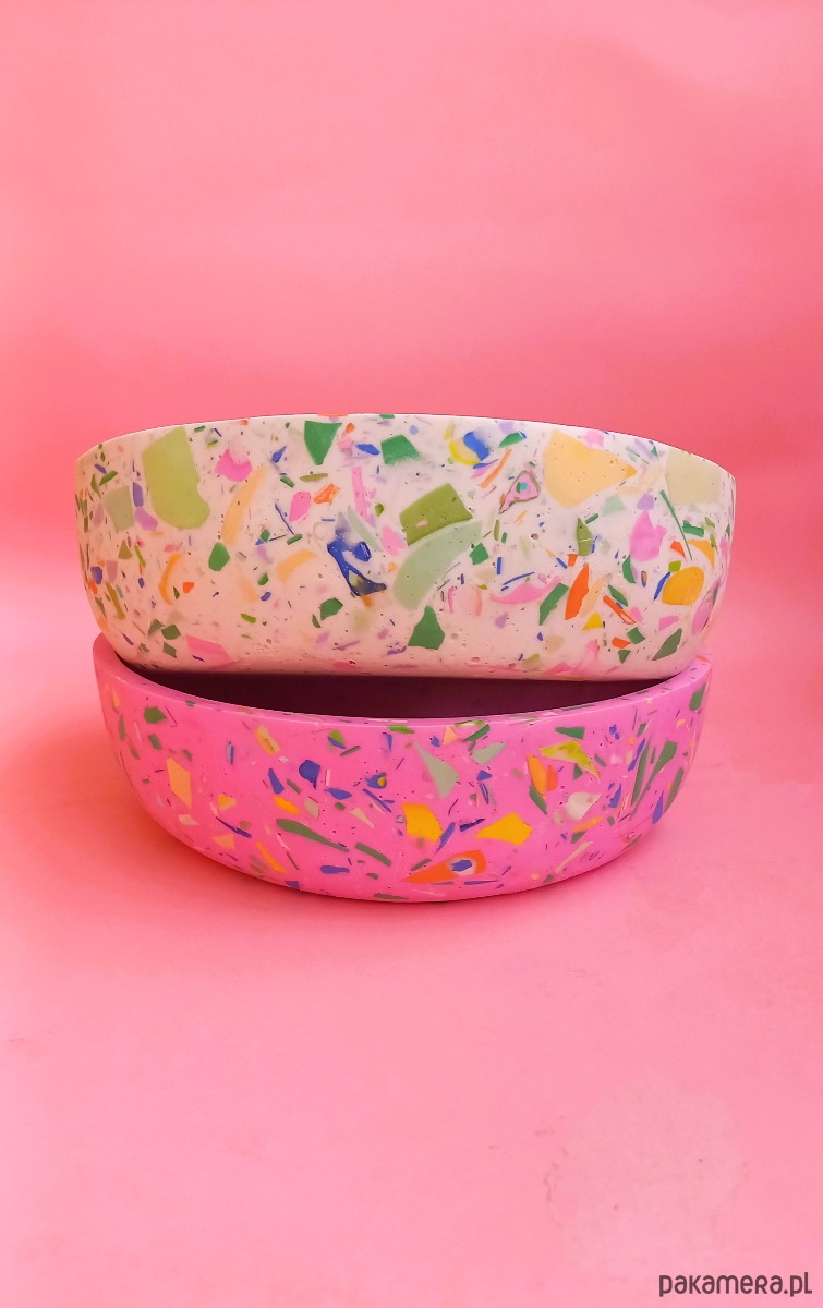 Duża misa na owoce/przekąski/dekoracje z wzorem terrazzo to idealny dodatek do każdej nowoczesnej kuchni lub salonu. Wielokolorowy, unikatowy wzór będzie przepiękną ozdobą Twojej kuchni i jadalni, która zaskoczy Twoich gości.