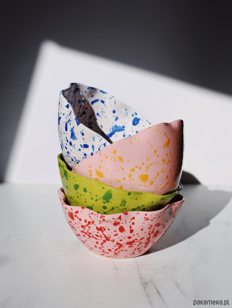 Kolorowe miski w ciapki, idealna na owsiankę lub rozgrzewającą zupę.