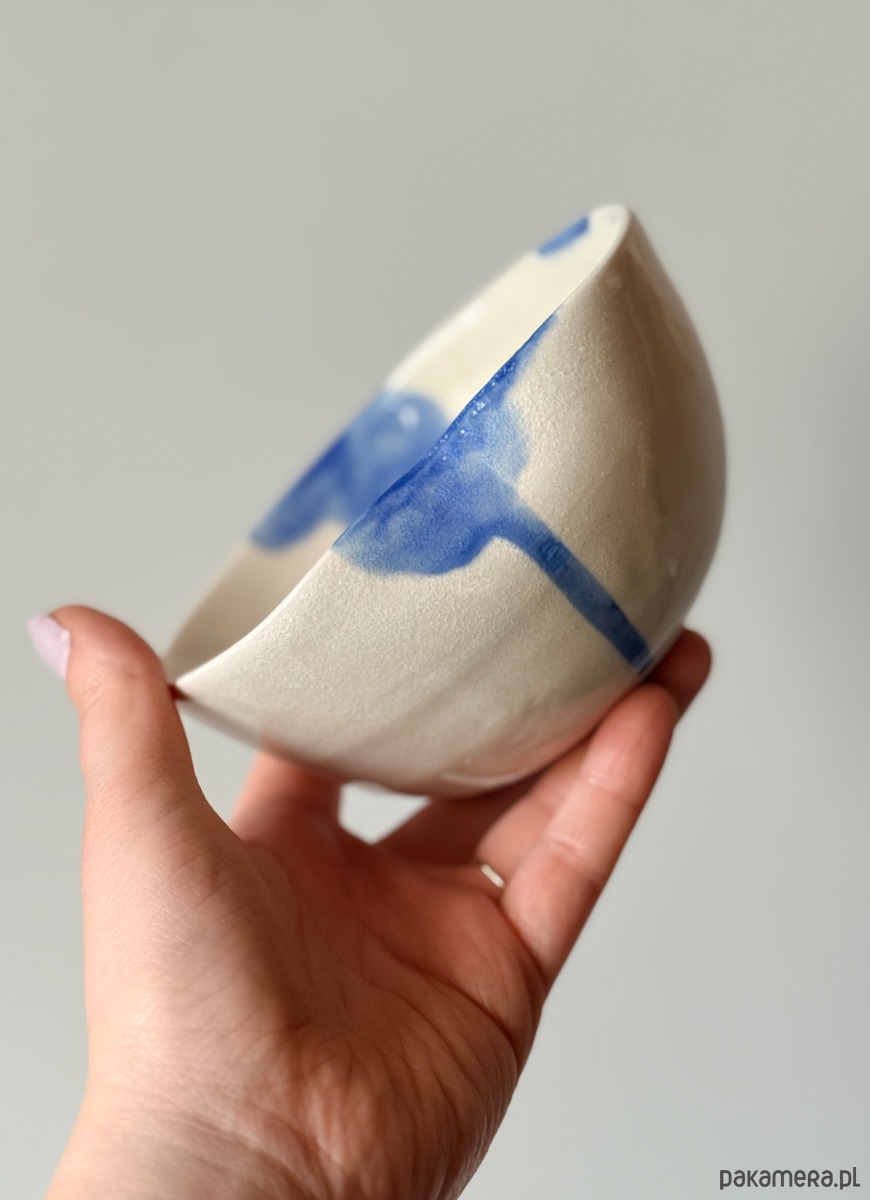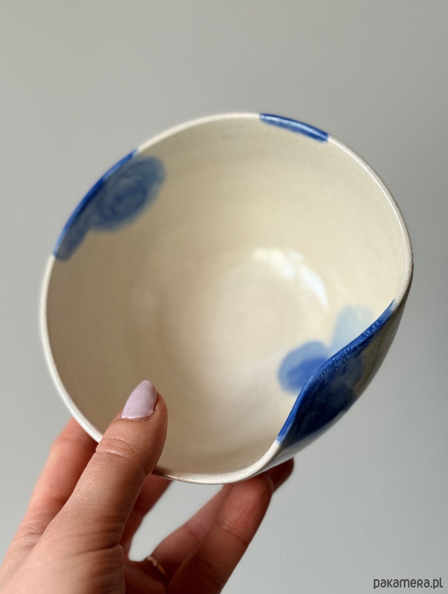 Ręcznie robiona i malowana miska z akwarelowym akcentem w kolorze niebieskim.