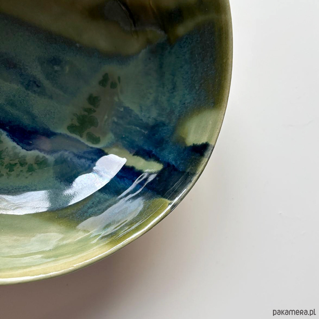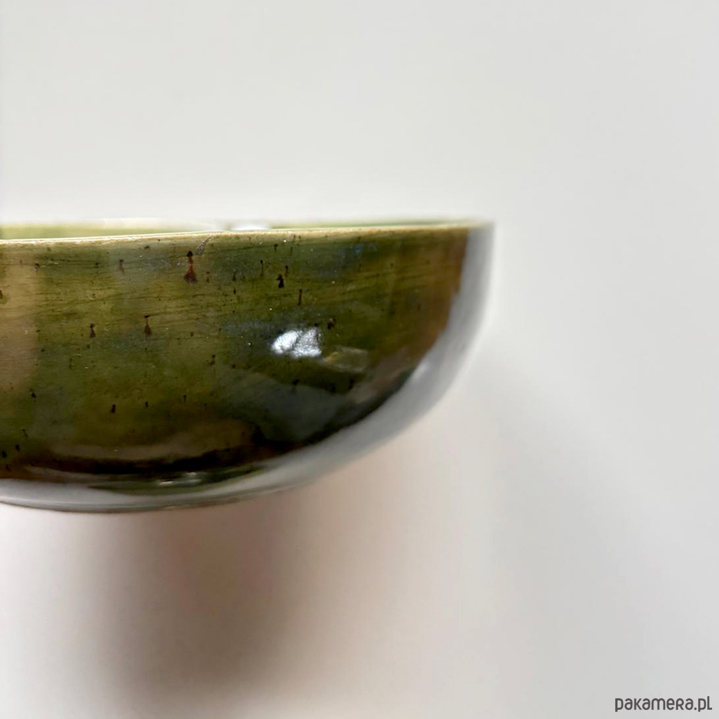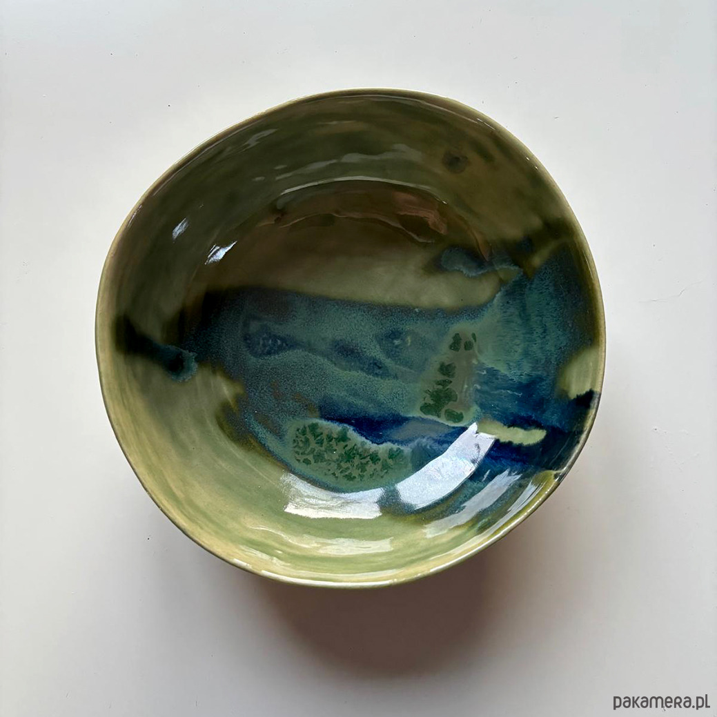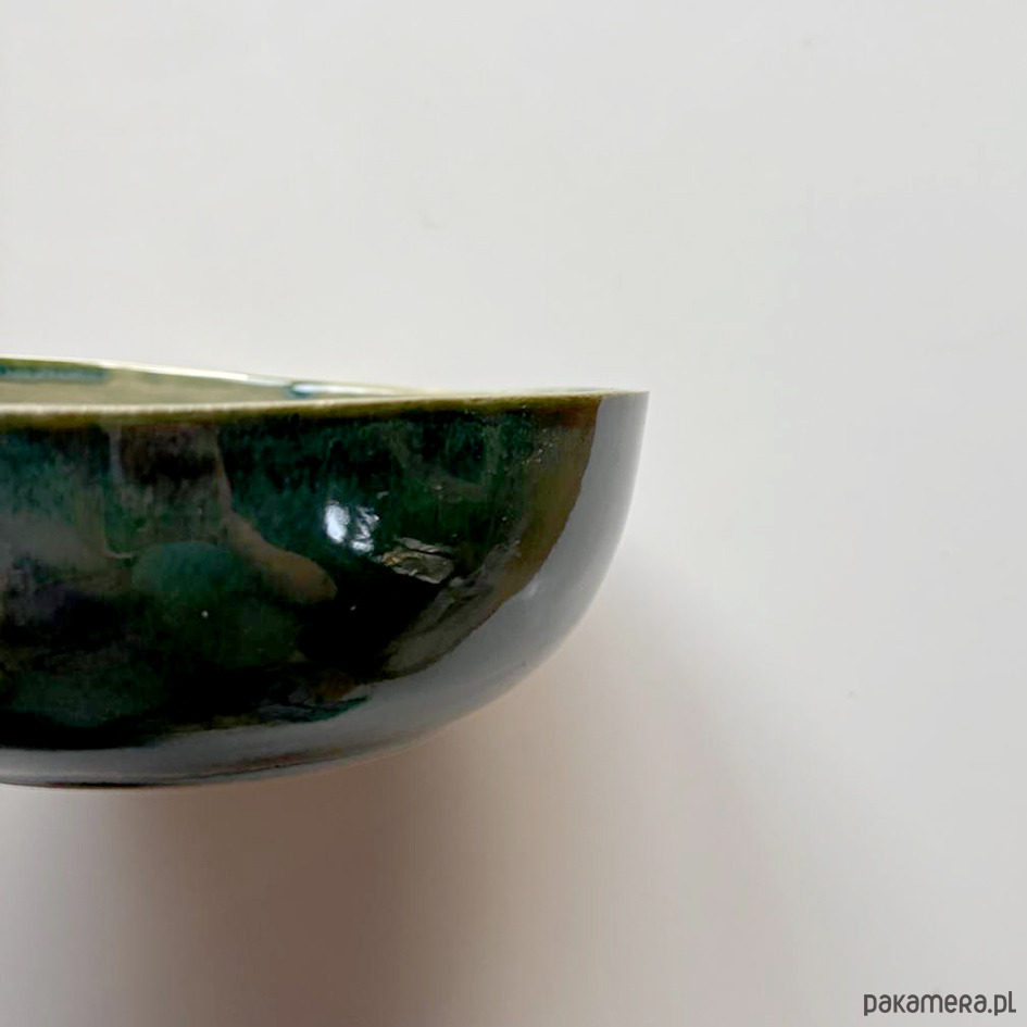Miski, ulepione z jasnej gliny pokryte zielonym szkliwem. Szerokie, owalne, wygodne.