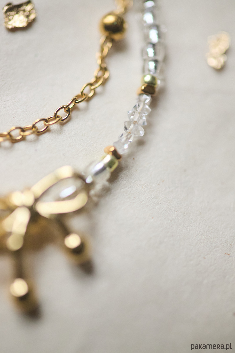 Nowa bransoletka idealnie nadaje się na wielkie celebracje. Jednoczenie zachęca do świętowania nawet małych drobnostek. Przecież to z nich składa się nasze życie i szczęście! Modne połączenie złota i srebra oraz kokardka wprowadzają nas w atmosferę celebracji. Prezenty, śnieg lampki, iskierki, grzaniec i ciarki satysfakcji, gdy wygląda się tak pięknie. Zrób sobie przyjemność w nagrodę za przetrwanie tego roku i ubierz na siebie diamenty herkimer, które tworzyły się pod ziemią tysiące lat —⊹₊⟡⋆