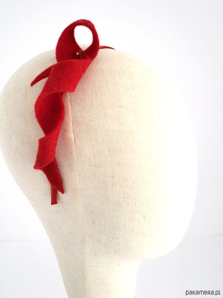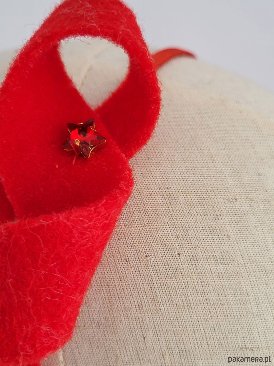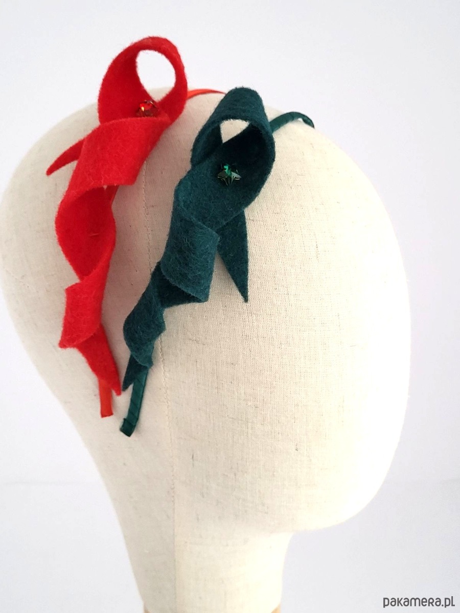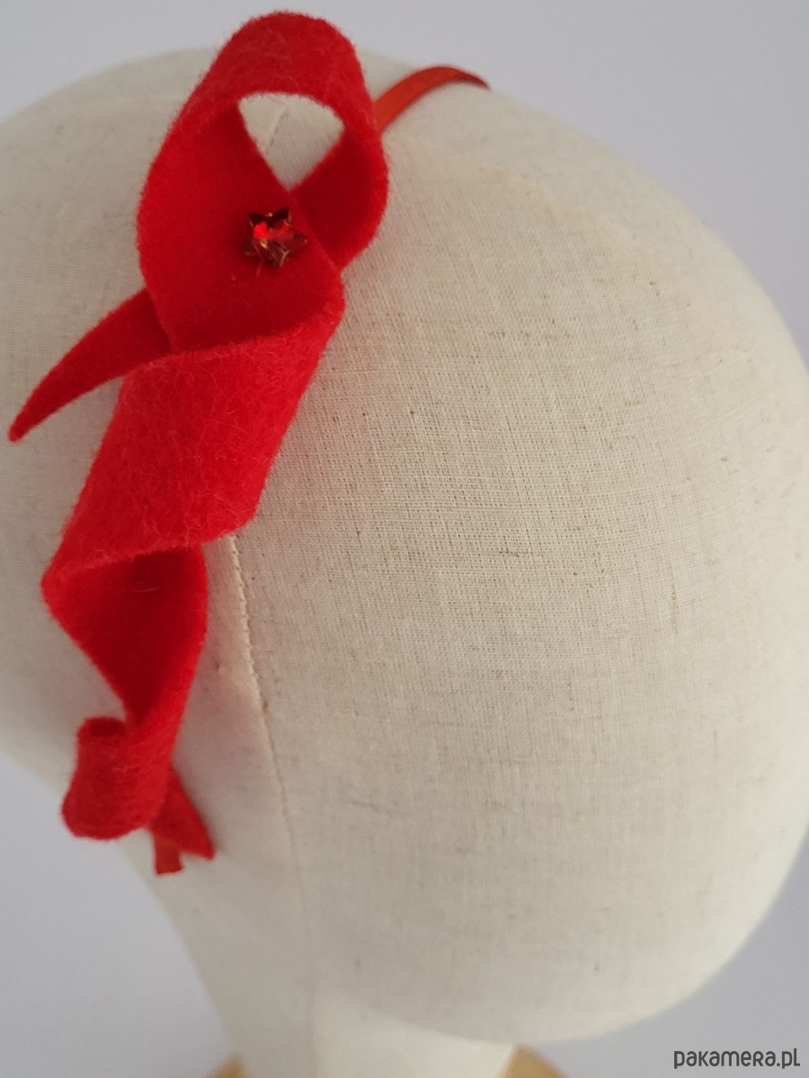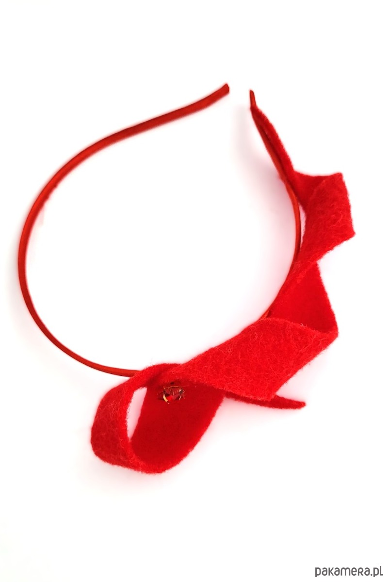 Opaska z dekoracją z naturalnego, wełnianego filcu. Zdobienie to tylko malutka błyszcząca gwiazdka. Przeurocza opcja na świąteczna przyjęcia!