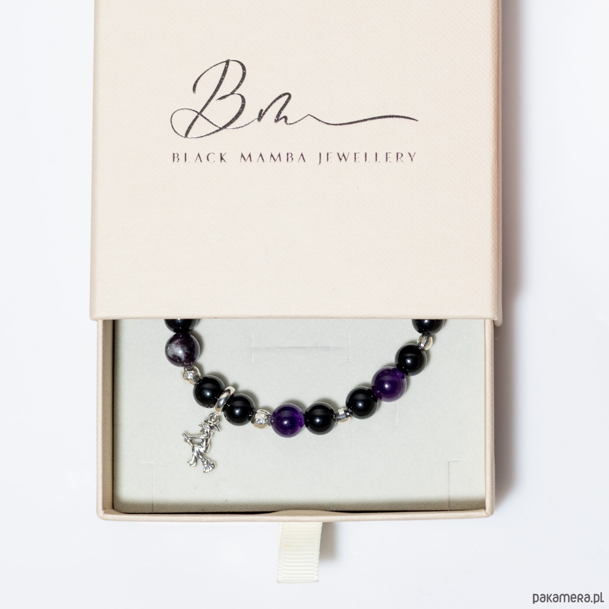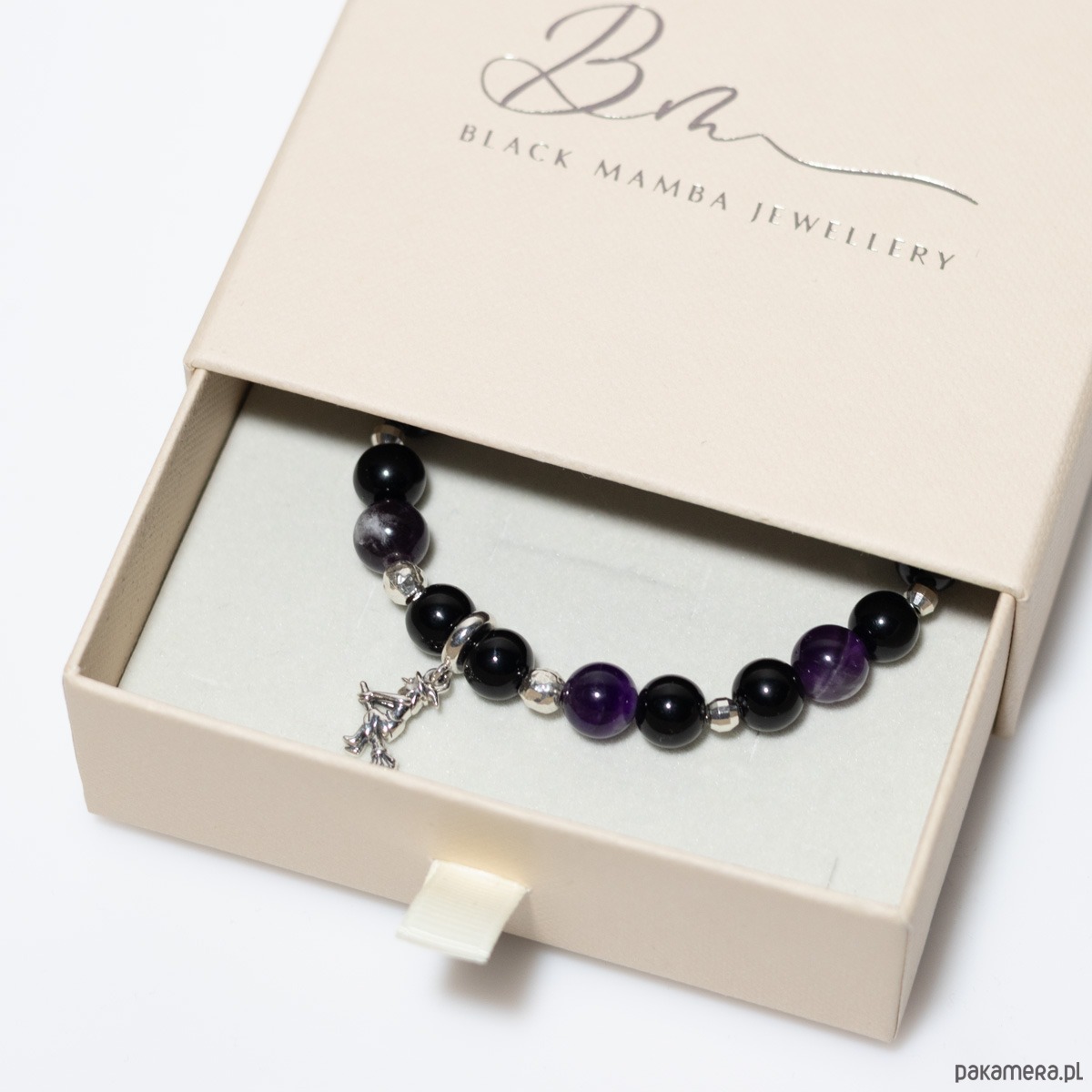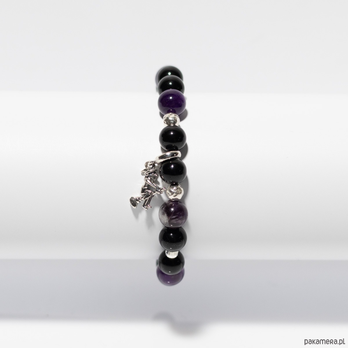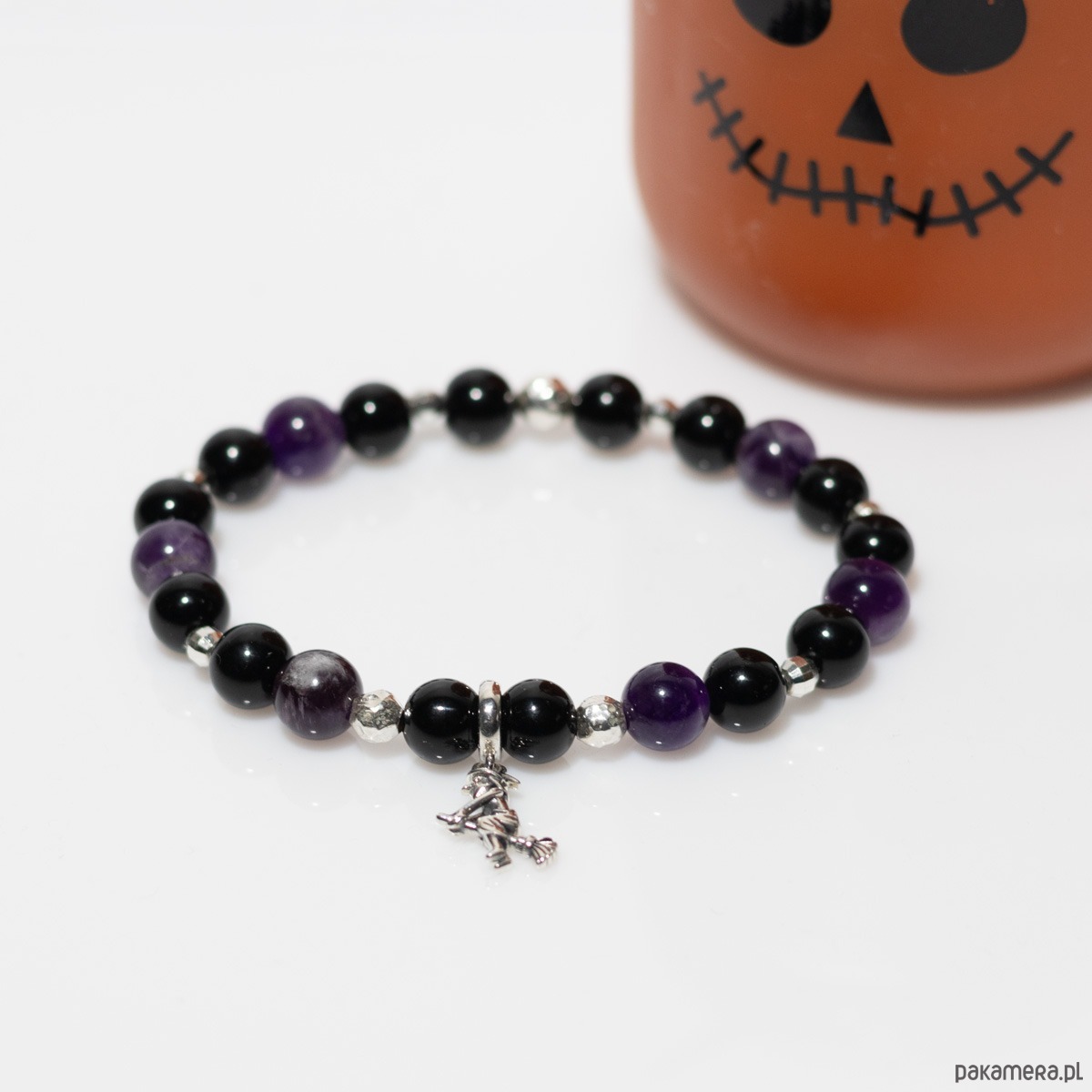 Poczuj magię zbliżającego się Halloween. Unikatowa bransoletka z kamieni naturalnych – onyks i ametyst, która ozdobiona jest srebrem 925 oraz srebrną przywieszką Wiedźma, to symbol intuicji, niezależności i wewnętrznej mądrości.