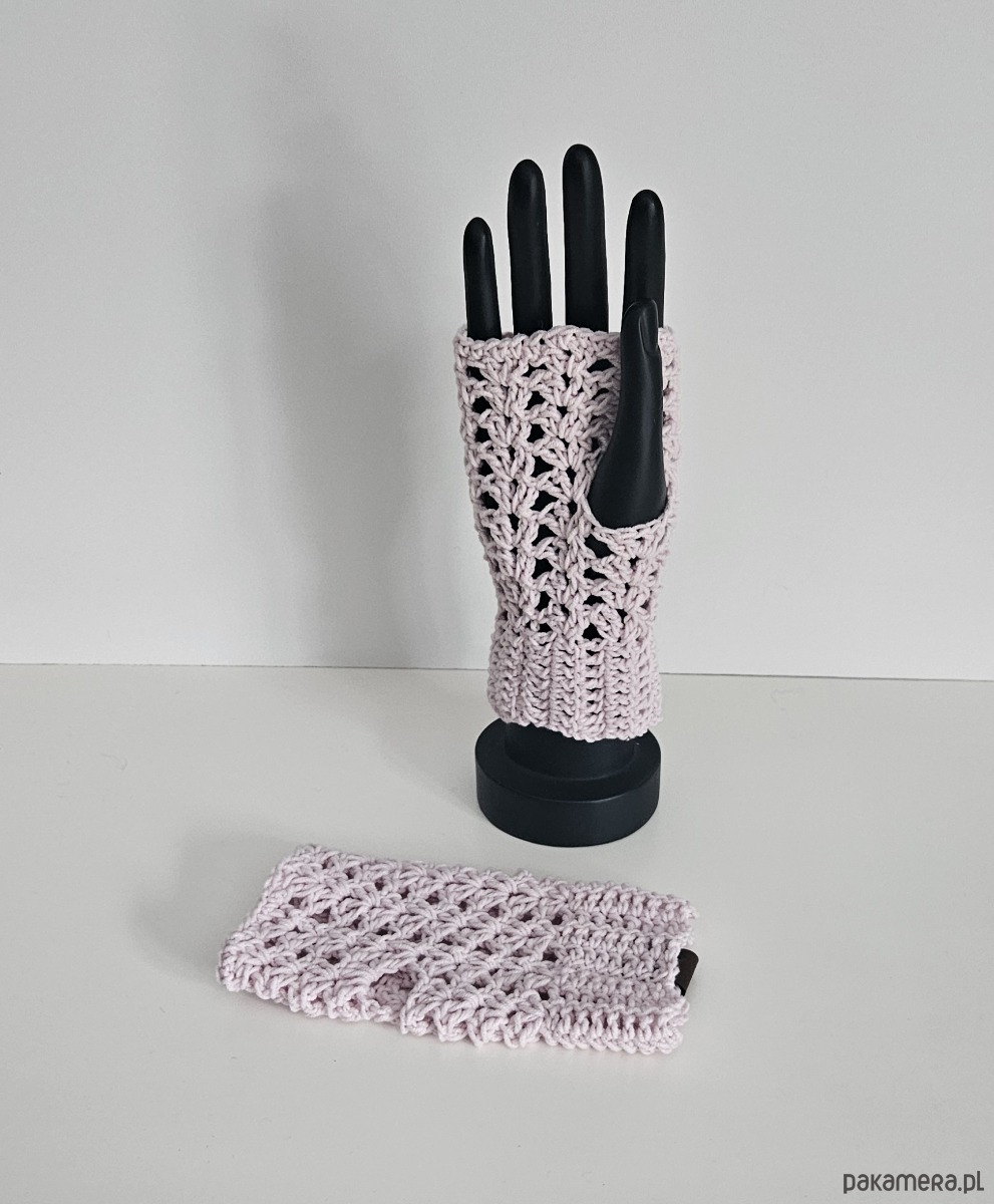 Klasyczny, ażurowy wzór inspirowany dawnym rękodziełem nadaje im lekkości i subtelnej elegancji. Mitenki doskonale wpisują się w estetykę retro i boho, pięknie komponując się zarówno z płaszczem, jak i swetrem czy lnianą kurtką.