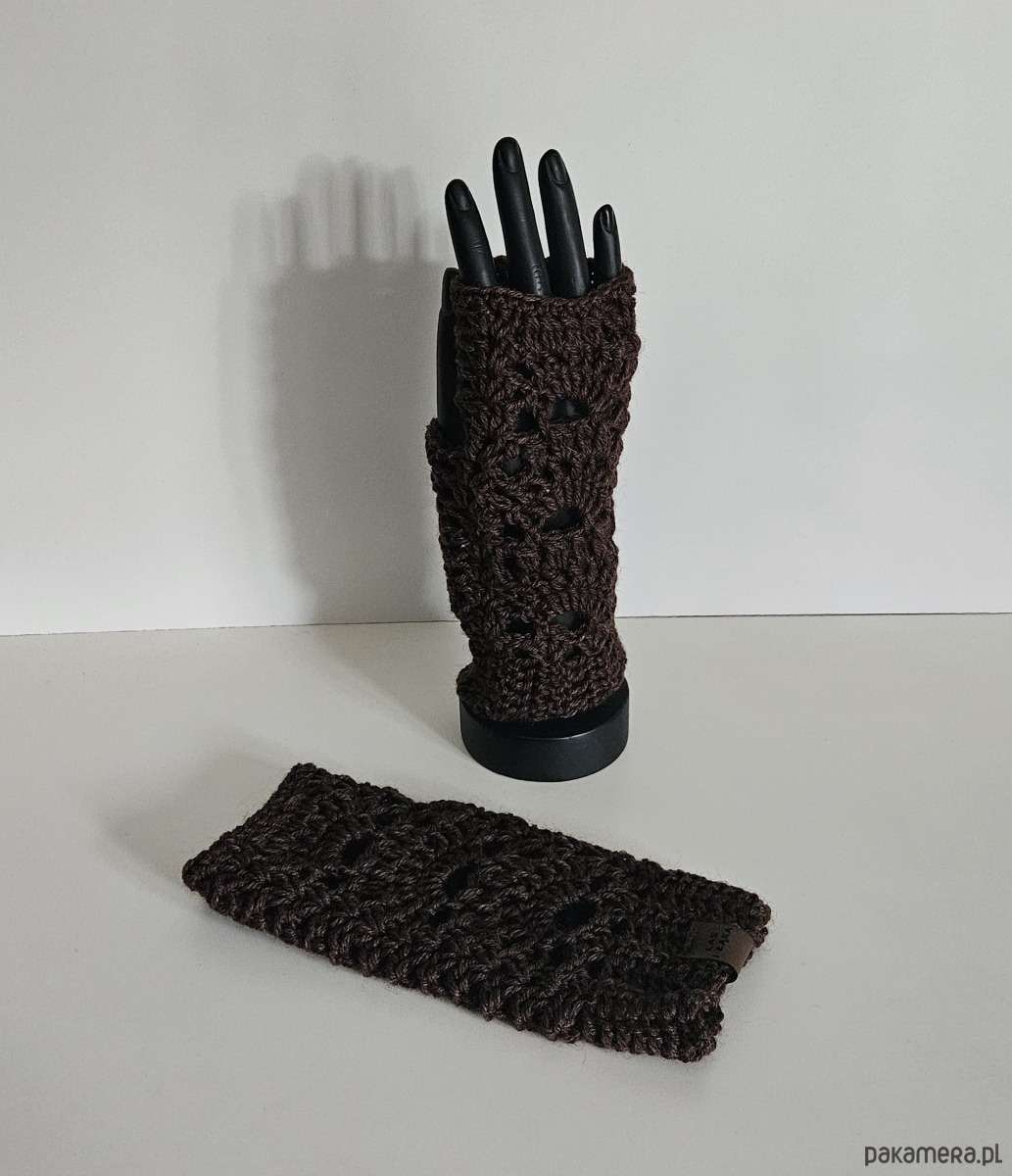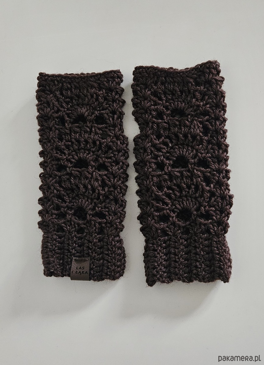 Klasyczny, ażurowy wzór inspirowany dawnym rękodziełem nadaje im lekkości i subtelnej elegancji. Mitenki doskonale wpisują się w estetykę retro i boho, pięknie komponując się zarówno z płaszczem, jak i swetrem czy lnianą kurtką.
