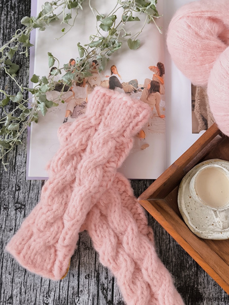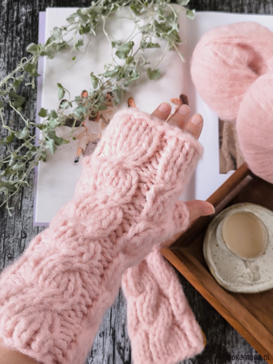 Mitenki z alpaki z warkoczami LULLABY 100 % alpaka różowe
