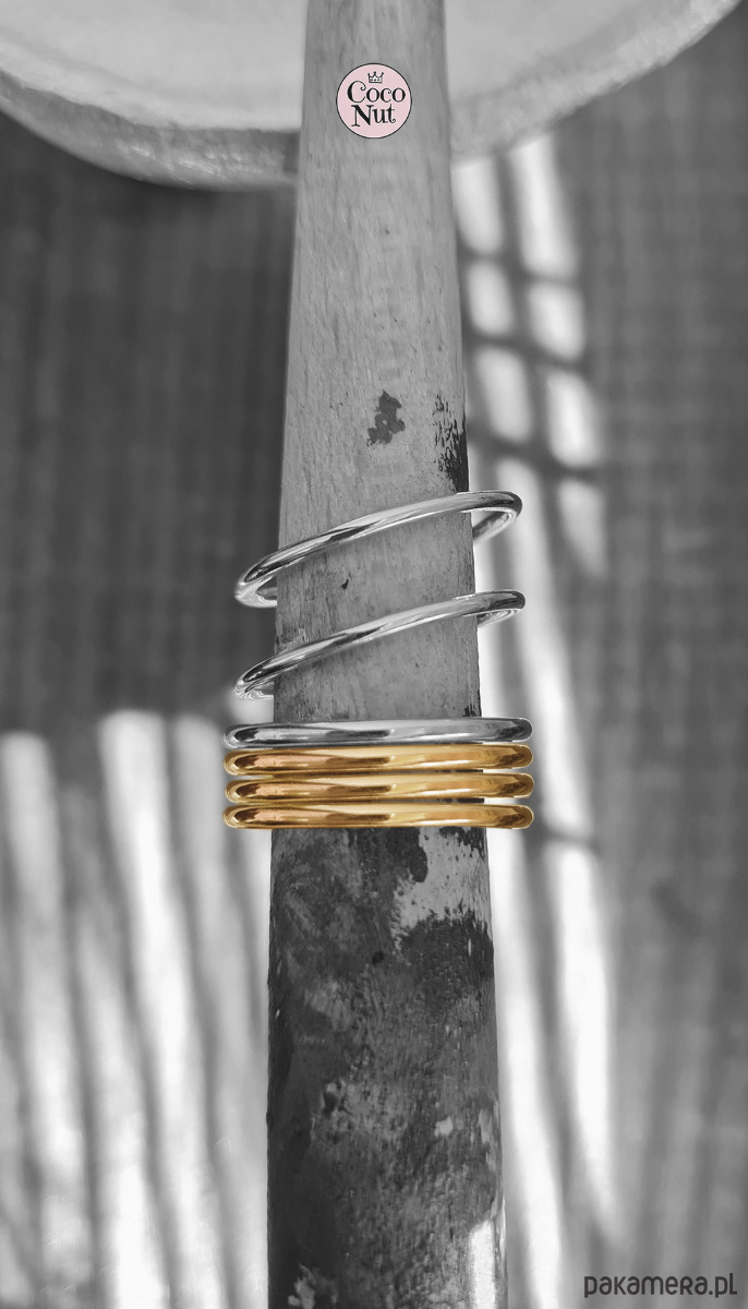 Dowolny mix 6 obrączek ze srebra 925, o szerokości ok. 1-1,2 mm - dowolna kombinacja srebrnych, oksydowanych (ciemne srebro) i złoconych, BASAL, mogą być różne rozmiary :)