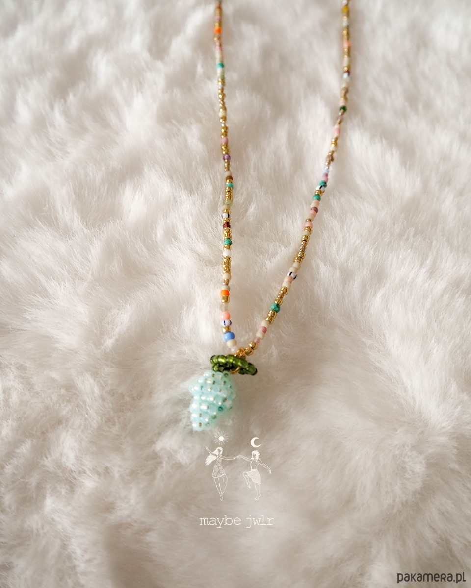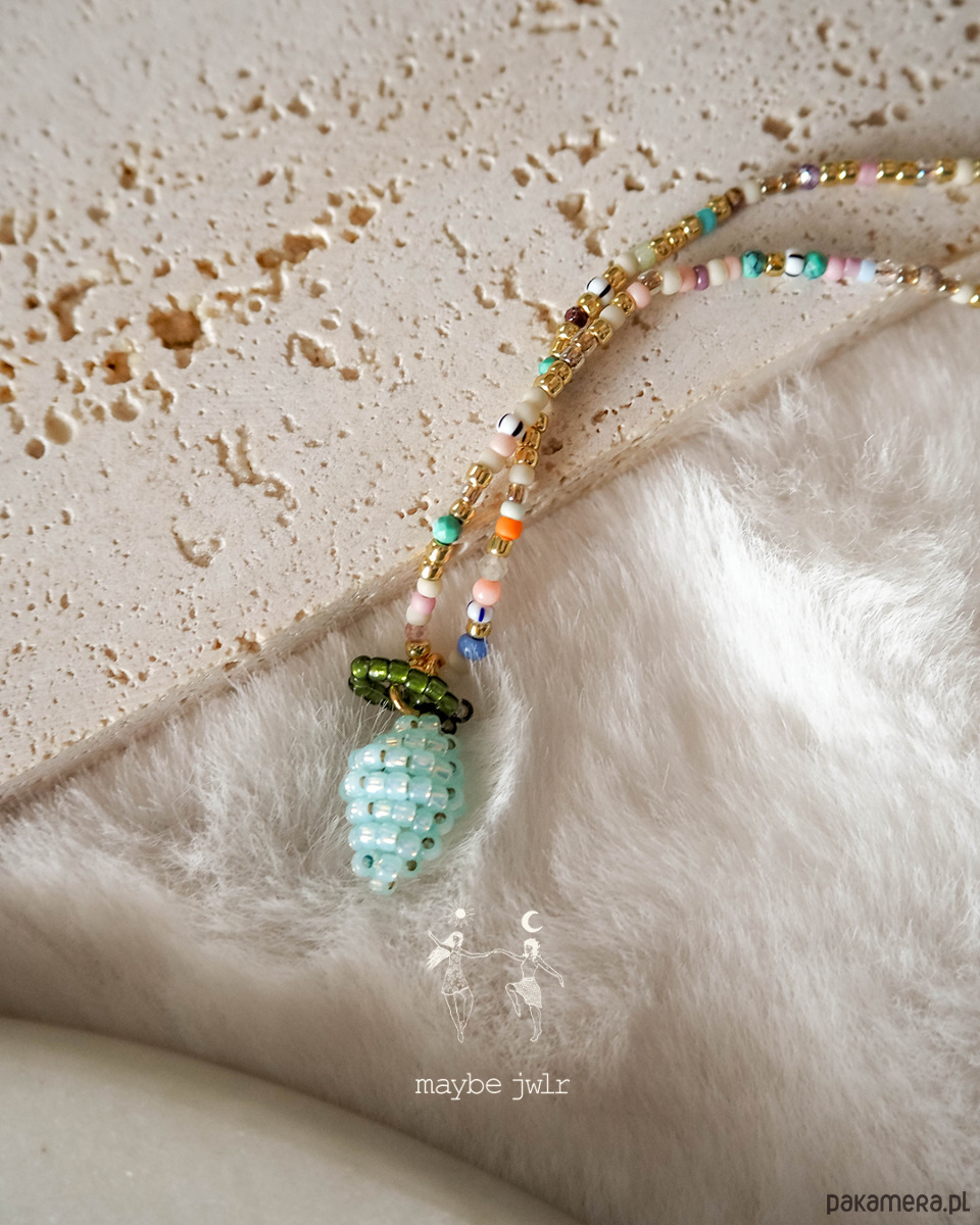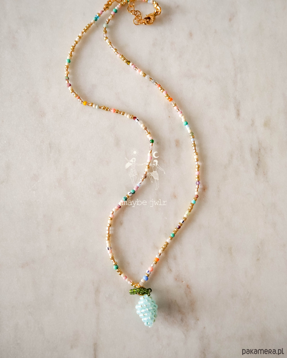 Naszyjnik jest elegancki i pięknie się mieni. W centrum jest ręcznie pleciona cytrynka.