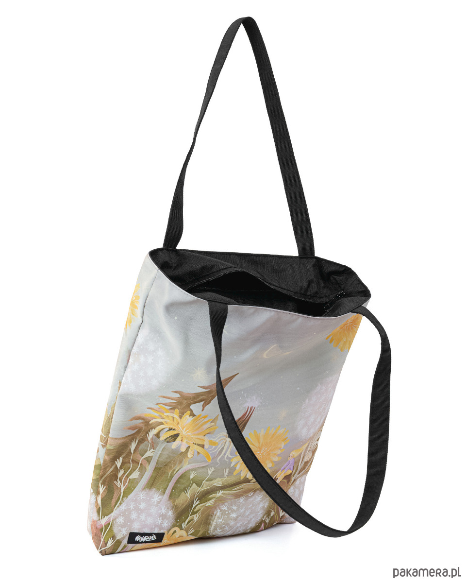 Wewnątrz znajduje się kieszeń zapinana na zamek, rączki wzmocnione paskiem.