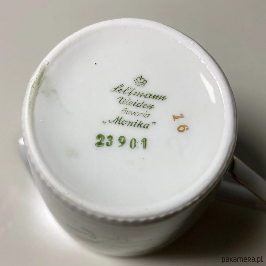 Porcelanowy dzbanuszek mlecznik będący częścią serwisu Seltmann Weiden Bavaria z serii „Monika”. Stan bardzo dobry. Wysokość 9 cm