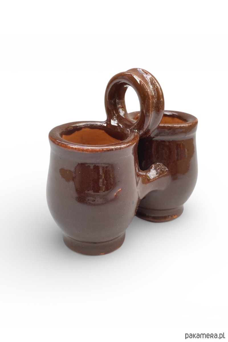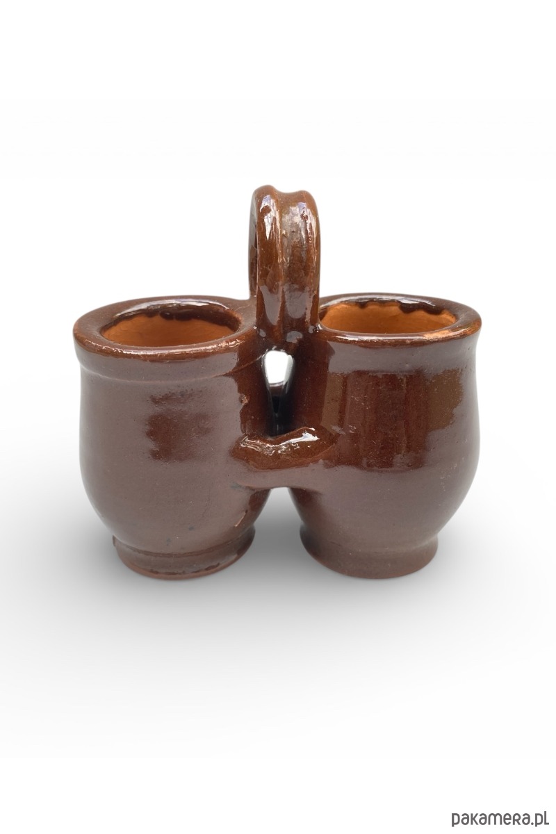 Ceramiczny pojemnik na przyprawy . Stan bardzo dobry poza drobnym ubytkiem. Wysokość 8 cm, długość 9 cm, średnica otworu 4 cm.